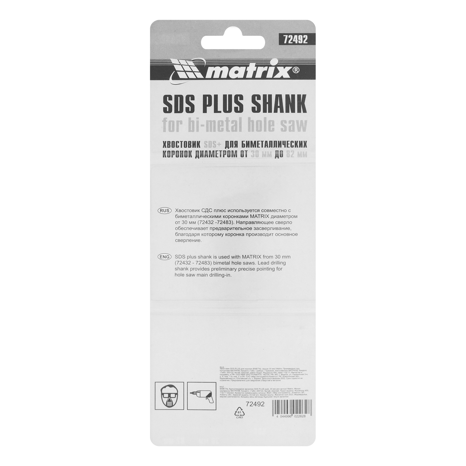 Хвостовик SDS Plus для коронок Bimetal свыше 30 мм Matrix в Москве