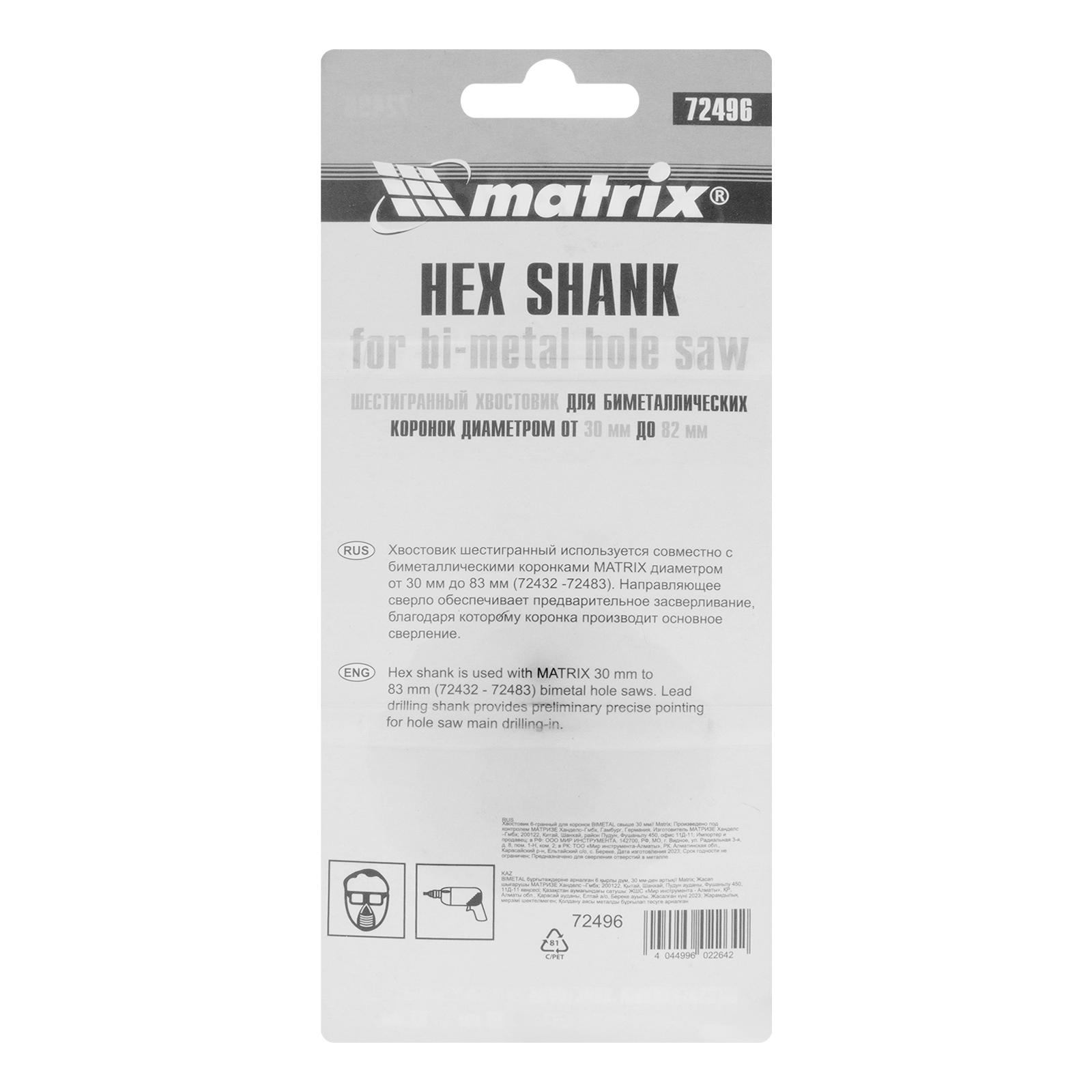 Хвостовик шестигранный для коронок Bimetal свыше 30 мм Matrix в Москве