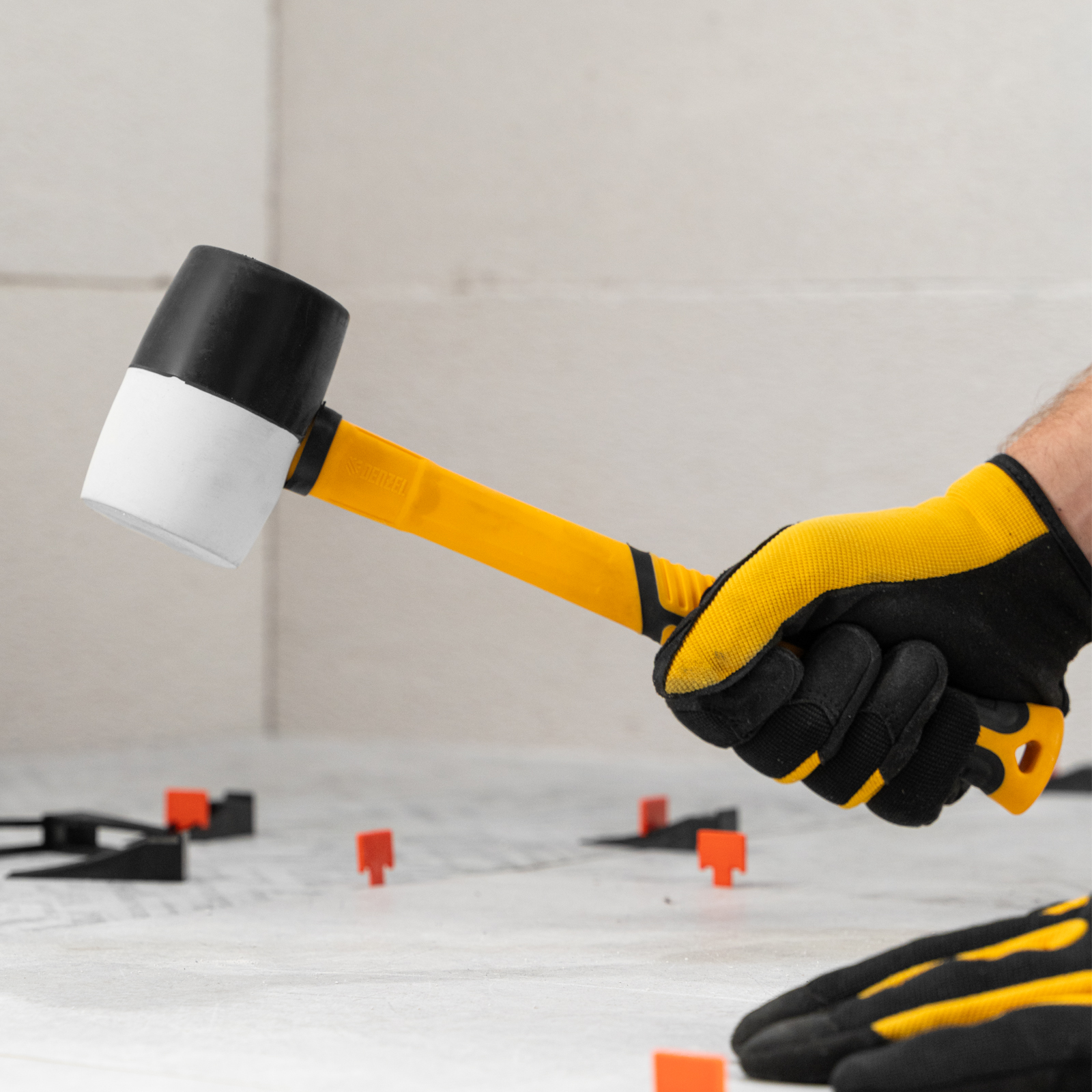 - Безопасная работа со светлыми материалами — часть бойка из белой резины не оставляет следов.