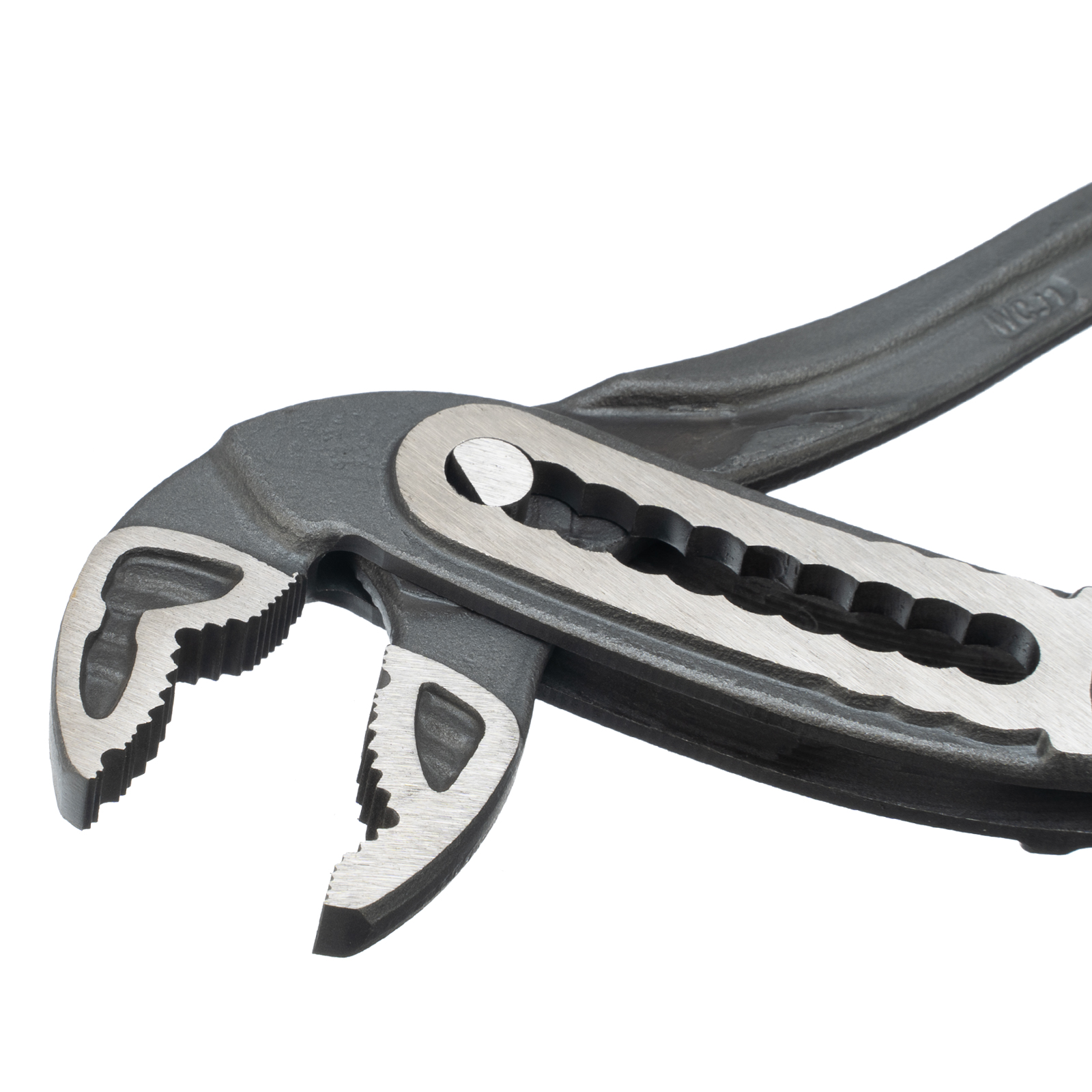 Переставные клещи Denzel 17902 длиной 240 мм, с обливными рукоятками, предназначены для фиксации и вращения деталей и заготовок различной формы. Подходят для захвата фитингов, труб, крепежных элементов. Инструмент используется при проведении ремонтных, монтажных, сантехнических работ.