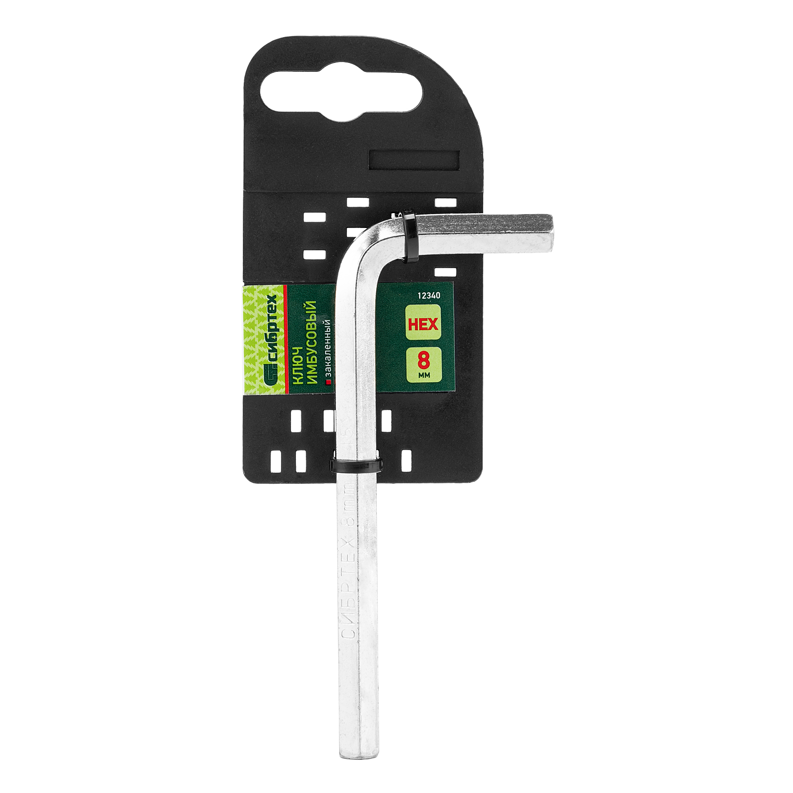 Ключ имбусовый никелированный Сибртех 12340 размером 8 мм, из закаленной стали 45Х, используется для монтажа и демонтажа резьбового крепежа с шестигранным шлицем HEX. Пригодится для сборки мебели, ремонта велосипедов, регулировки пластиковых окон и балконных дверей.