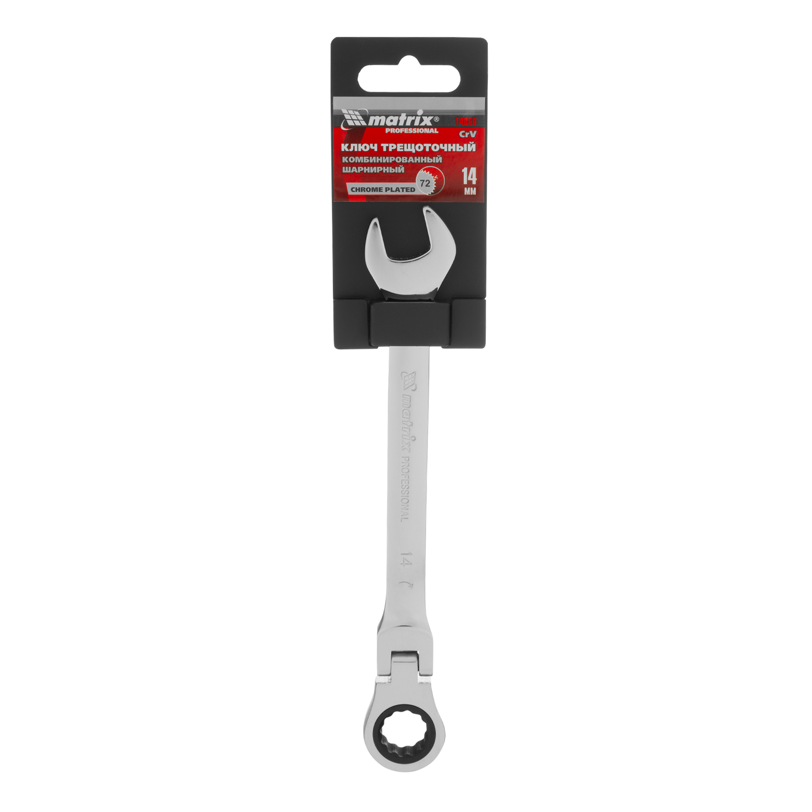 Ключ комбинированный трещоточный, 14 мм, CrV, шарнирный, зеркальный хром Matrix Professional в Москве