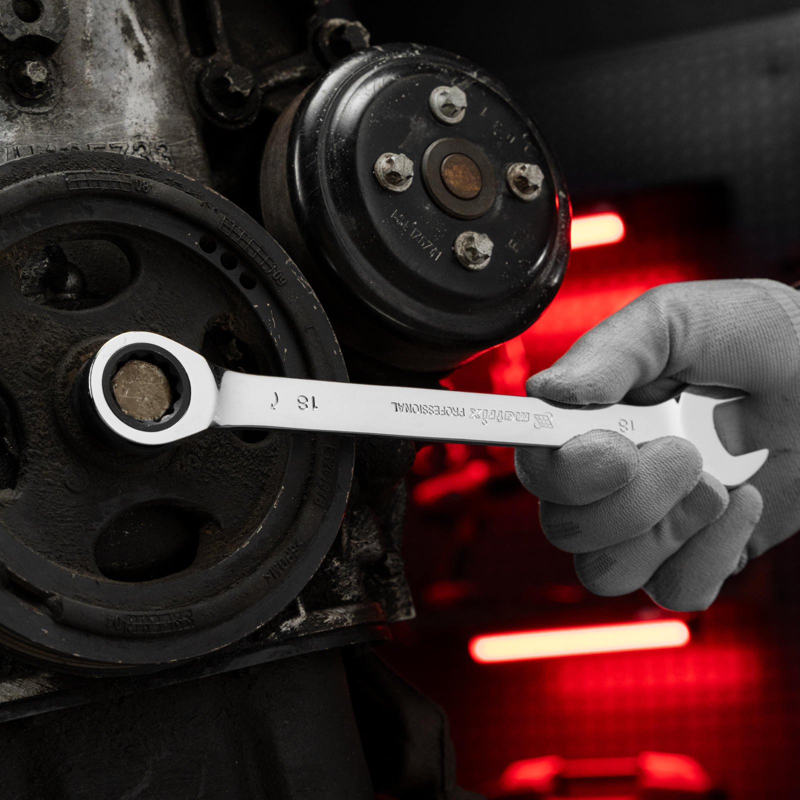Ключ комбинированный трещоточный, 18 мм, CrV, зеркальный хром Matrix Professional в Москве