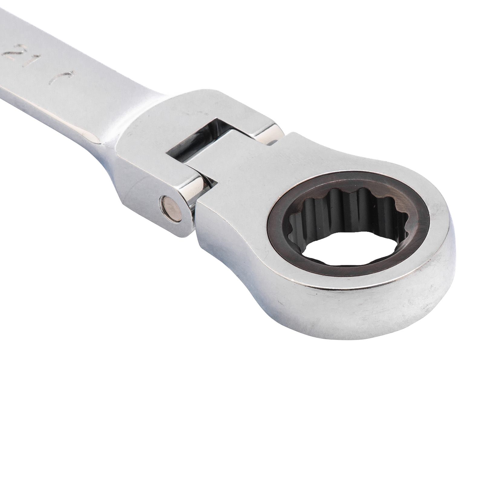 - Удобная работа в труднодоступных местах — храповой механизм на 72 зуба обеспечивает плавное вращение (шаг трещотки составляет 5°), а шарнир позволяет поворачивать рабочую часть под углом.