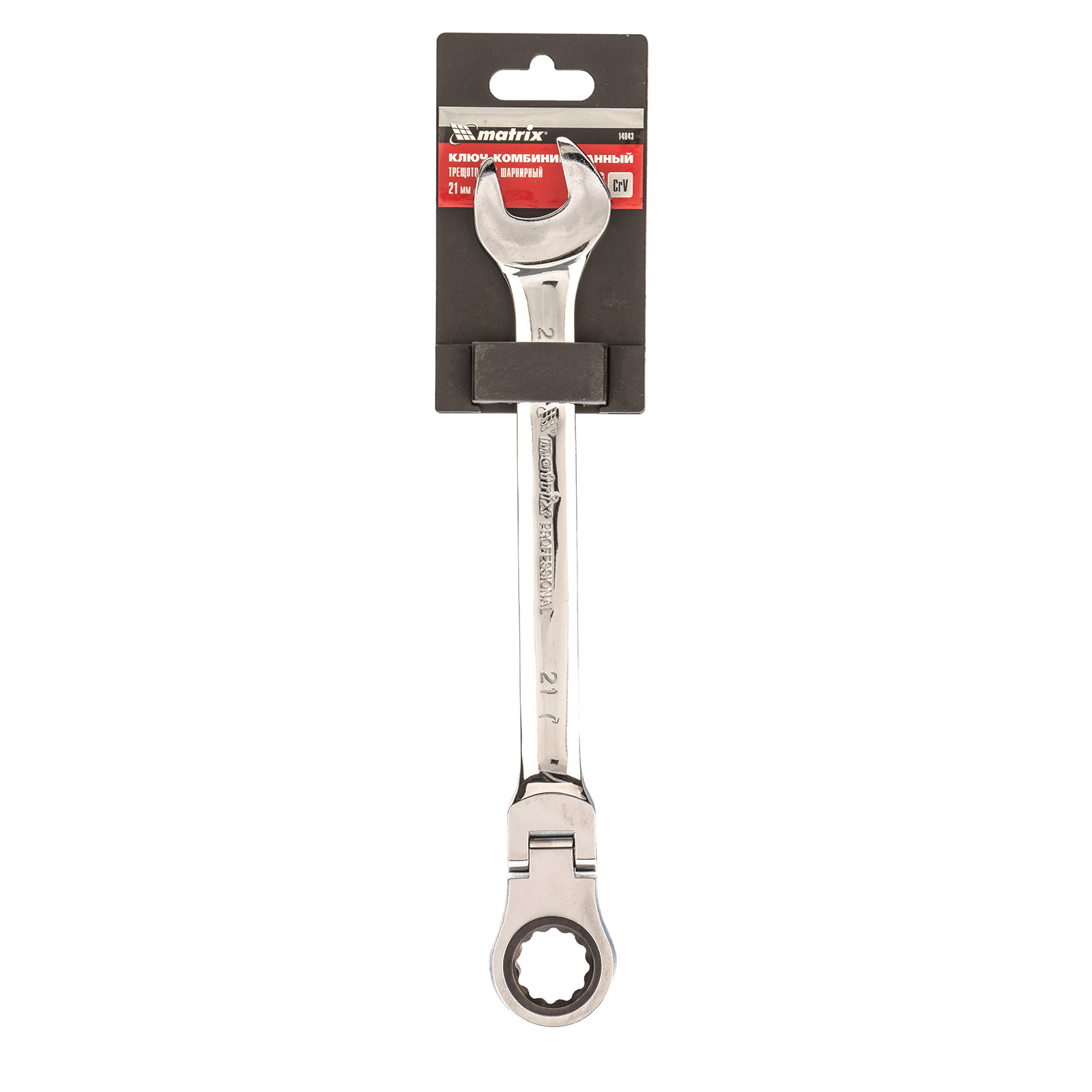Ключ комбинированный трещоточный, 21 мм, CrV, шарнирный, зеркальный хром Matrix в Москве