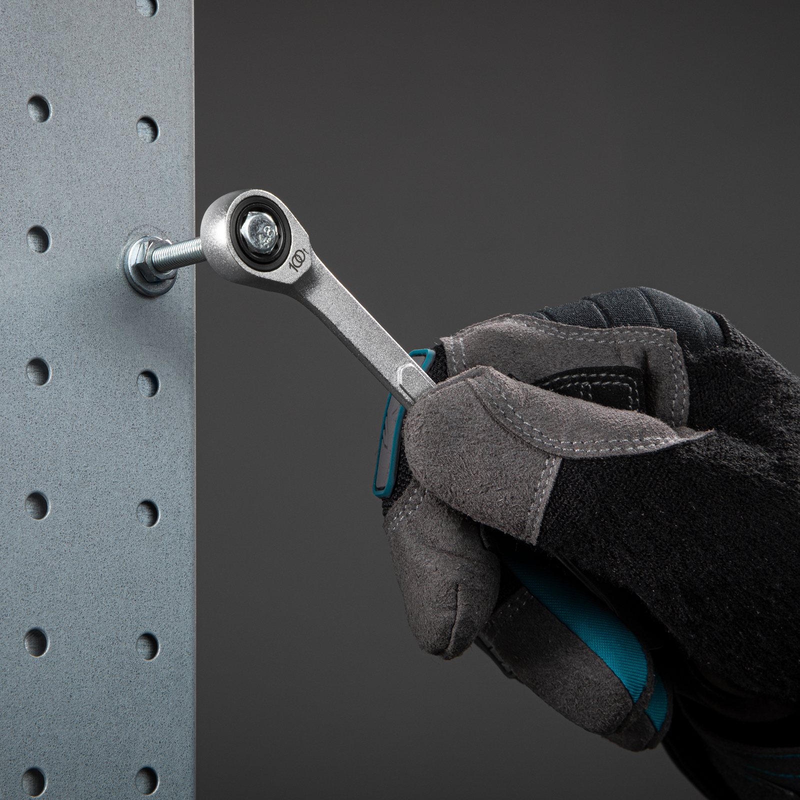 - Храповый механизм оснащен 100 зубцами, что обеспечивает плавность хода инструмента (шаг трещотки всего 3,6 градусов) и делает его удобным для работы в ограниченном пространстве.
