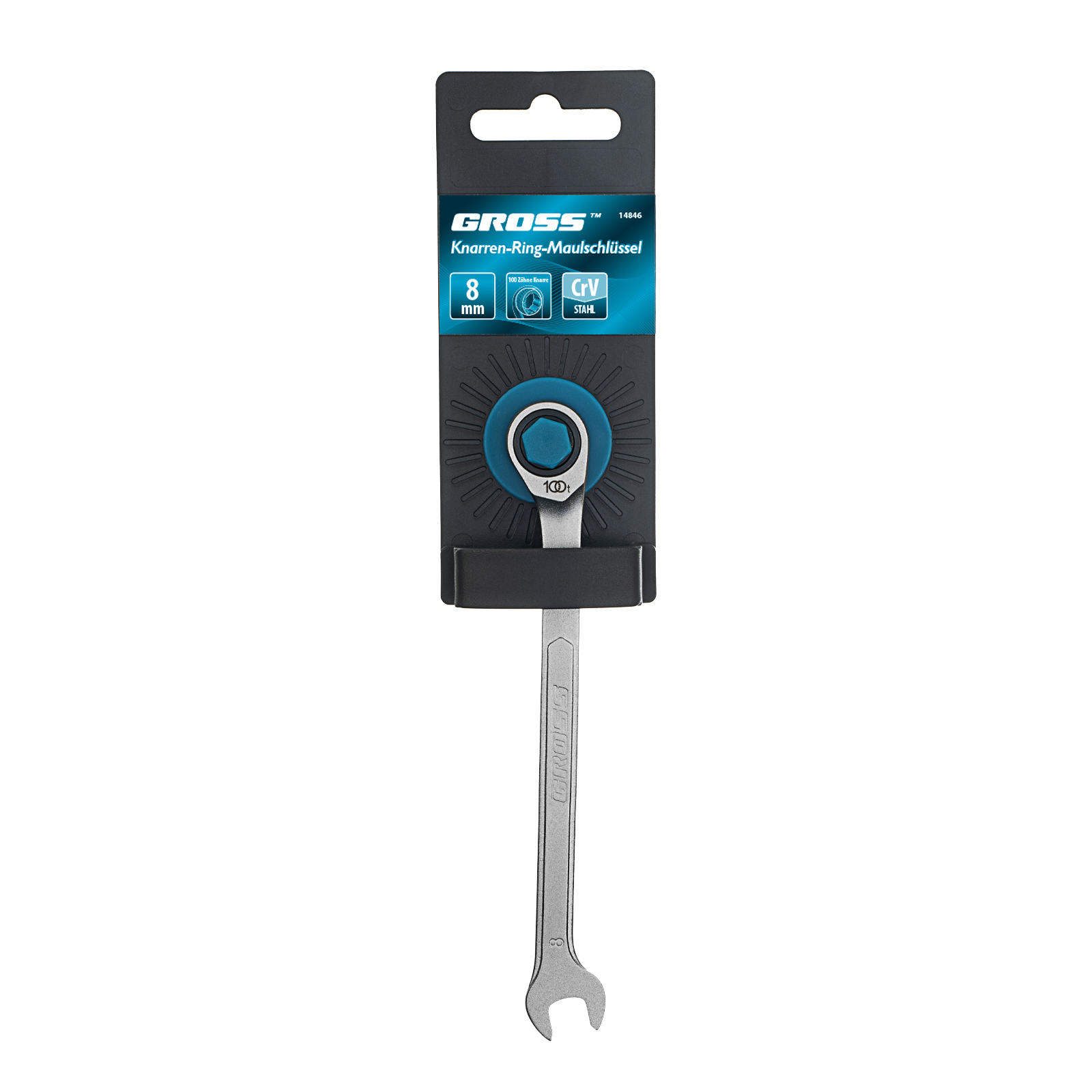 Ключ комбинированный трещоточный, 8 мм, количество зубьев 100 Gross в Москве
