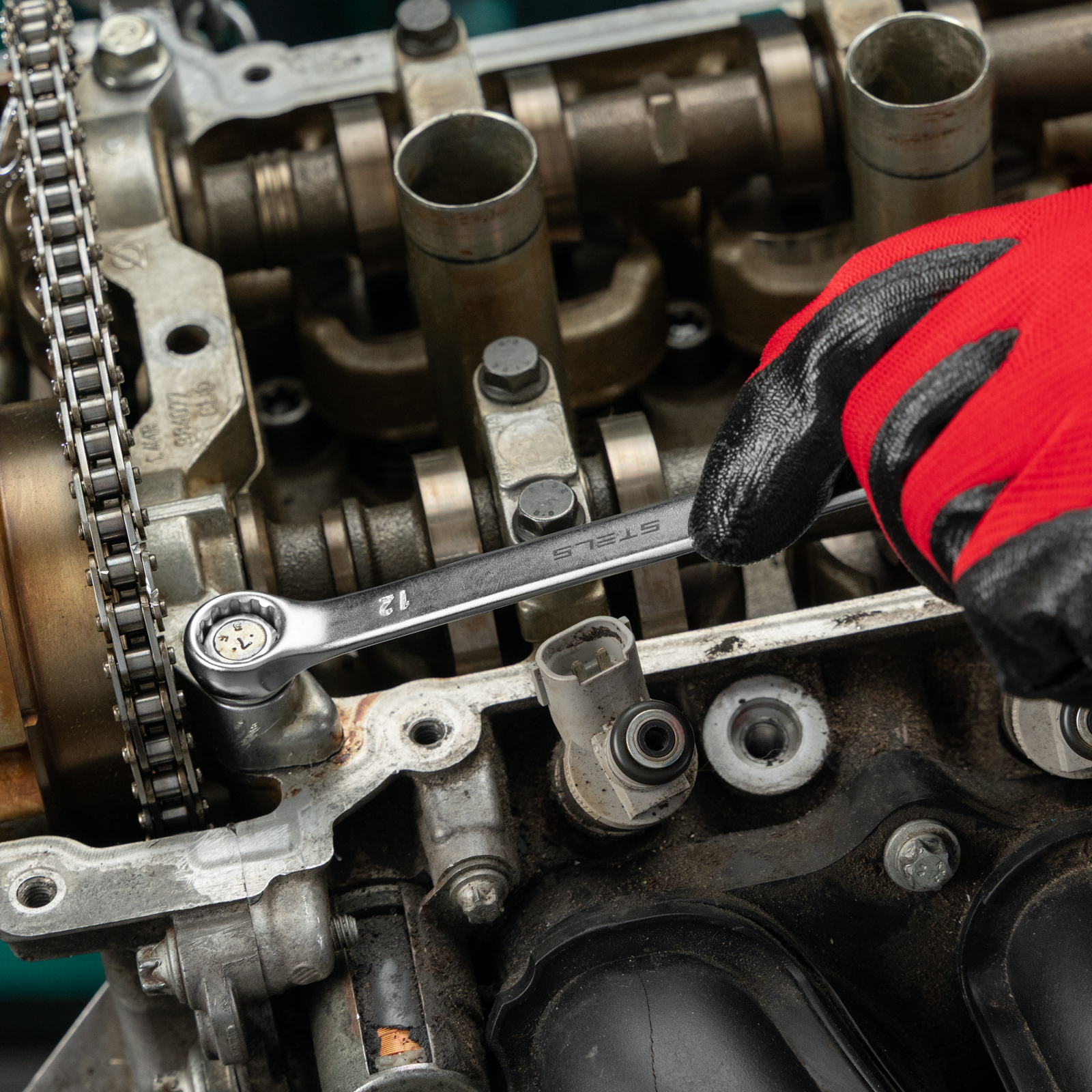 - Комфорт при монтаже в труднодоступных местах — кольцевой зев наклонен под углом в 15 градусов к плоскости ключа.