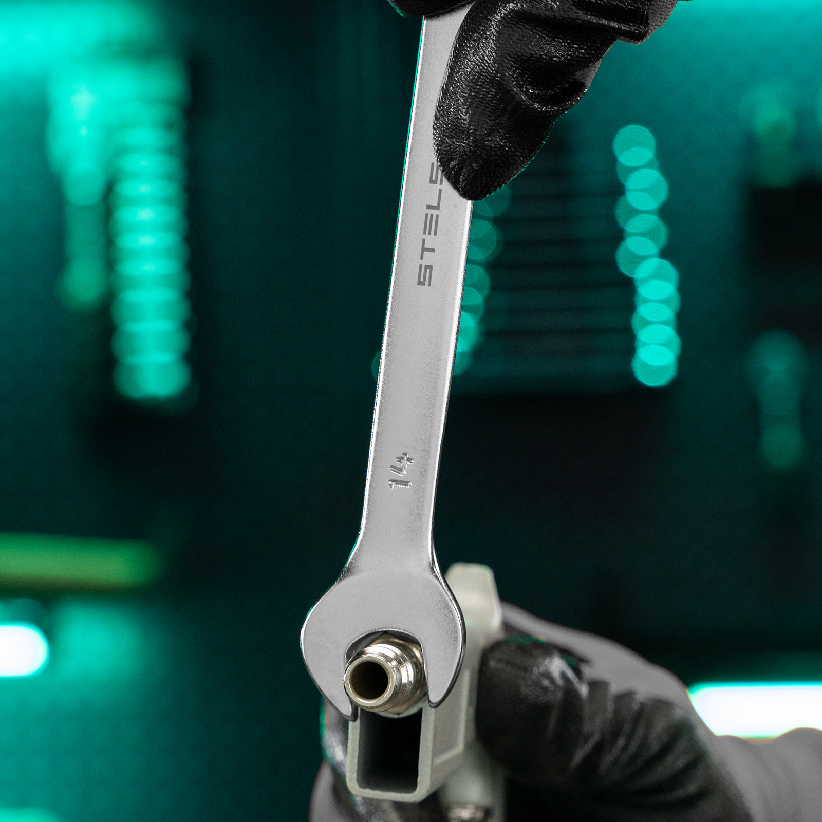 Ключ комбинированный, 14 мм, CrV, матовый хром Stels в Москве