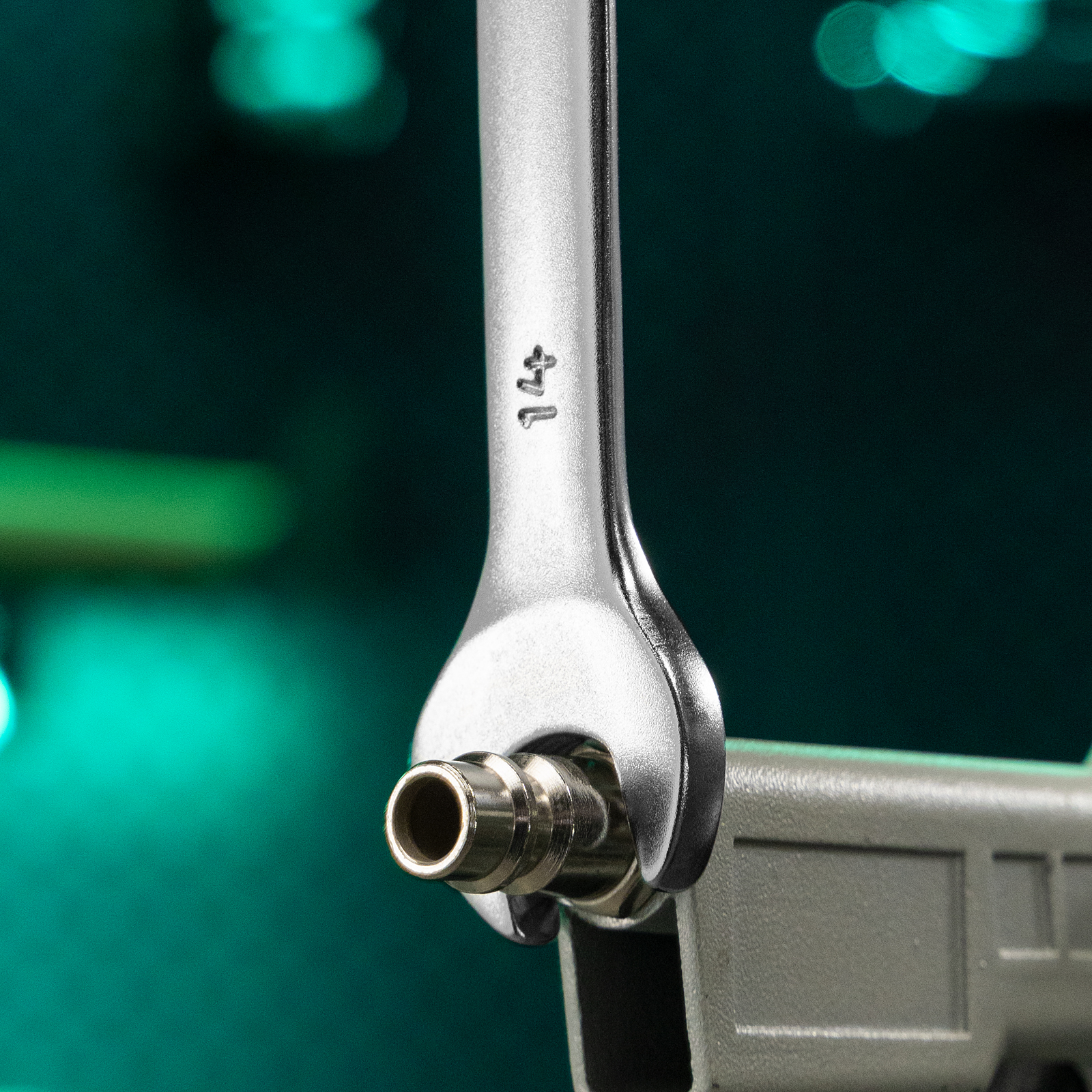 - Высокий показатель прочности — ключ изготовлен из стали хромованадиевой группы, рабочая часть закалена до твердости 45 HRC.