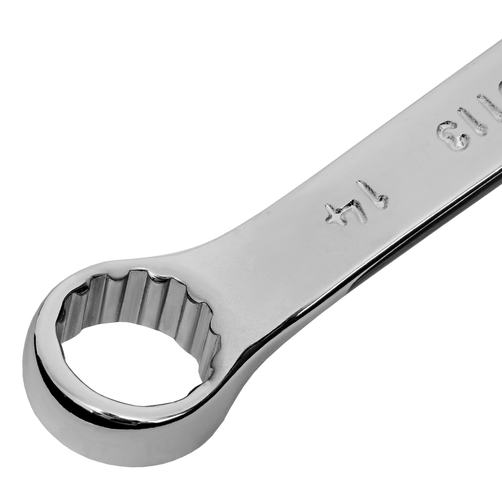 Комбинированный ключ Matrix 15158 размером 14 мм, из стали CrV, с покрытием «полированный хром», пригодится во время ремонтных работ дома или в гараже. С его помощью можно быстро монтировать и демонтировать крепежные элементы. Угол наклона кольцевого зева относительно плоскости инструмента составляет 15°, поэтому ключом удобно работать в труднодоступных местах.