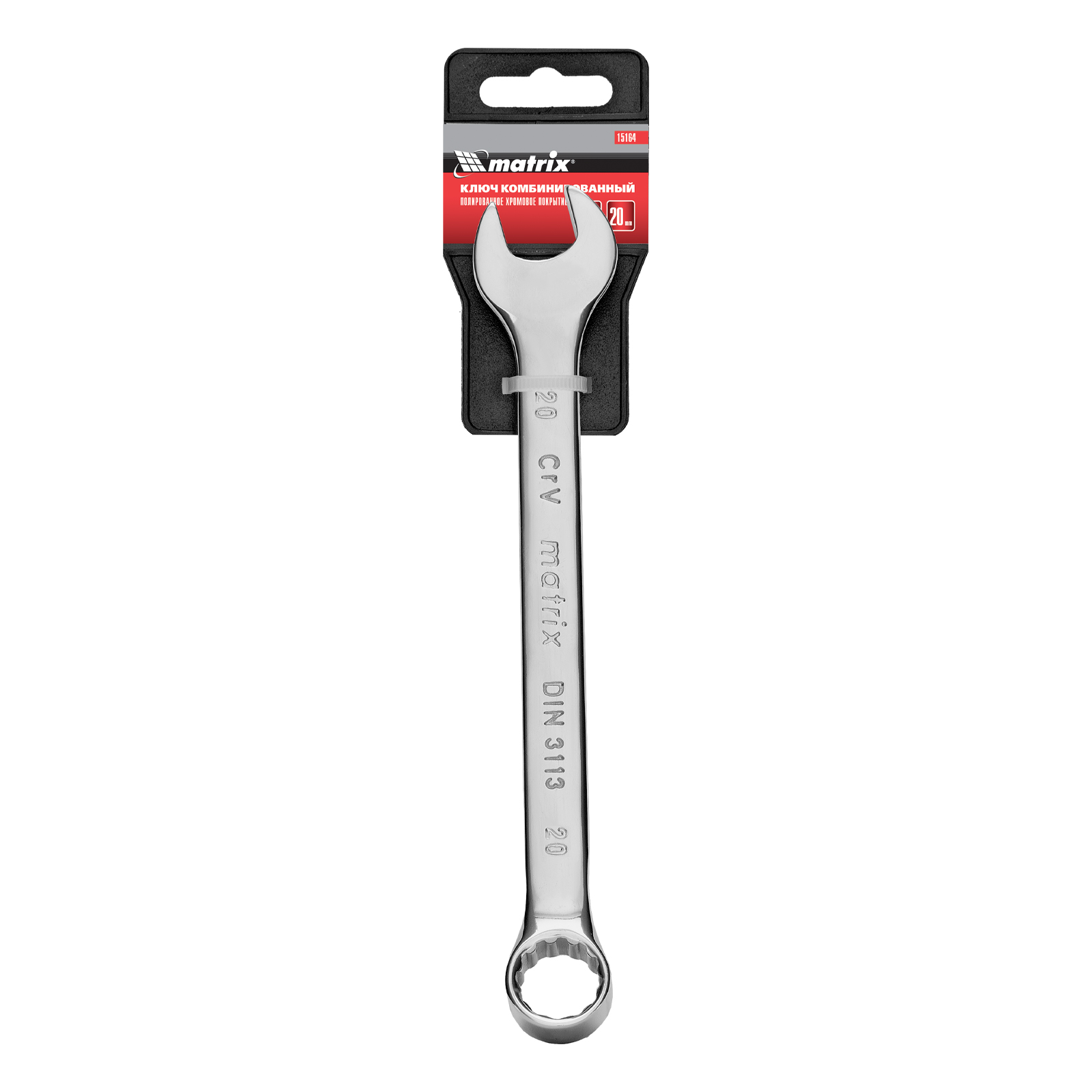 Ключ комбинированный, 20 мм, CrV, полированный хром Matrix