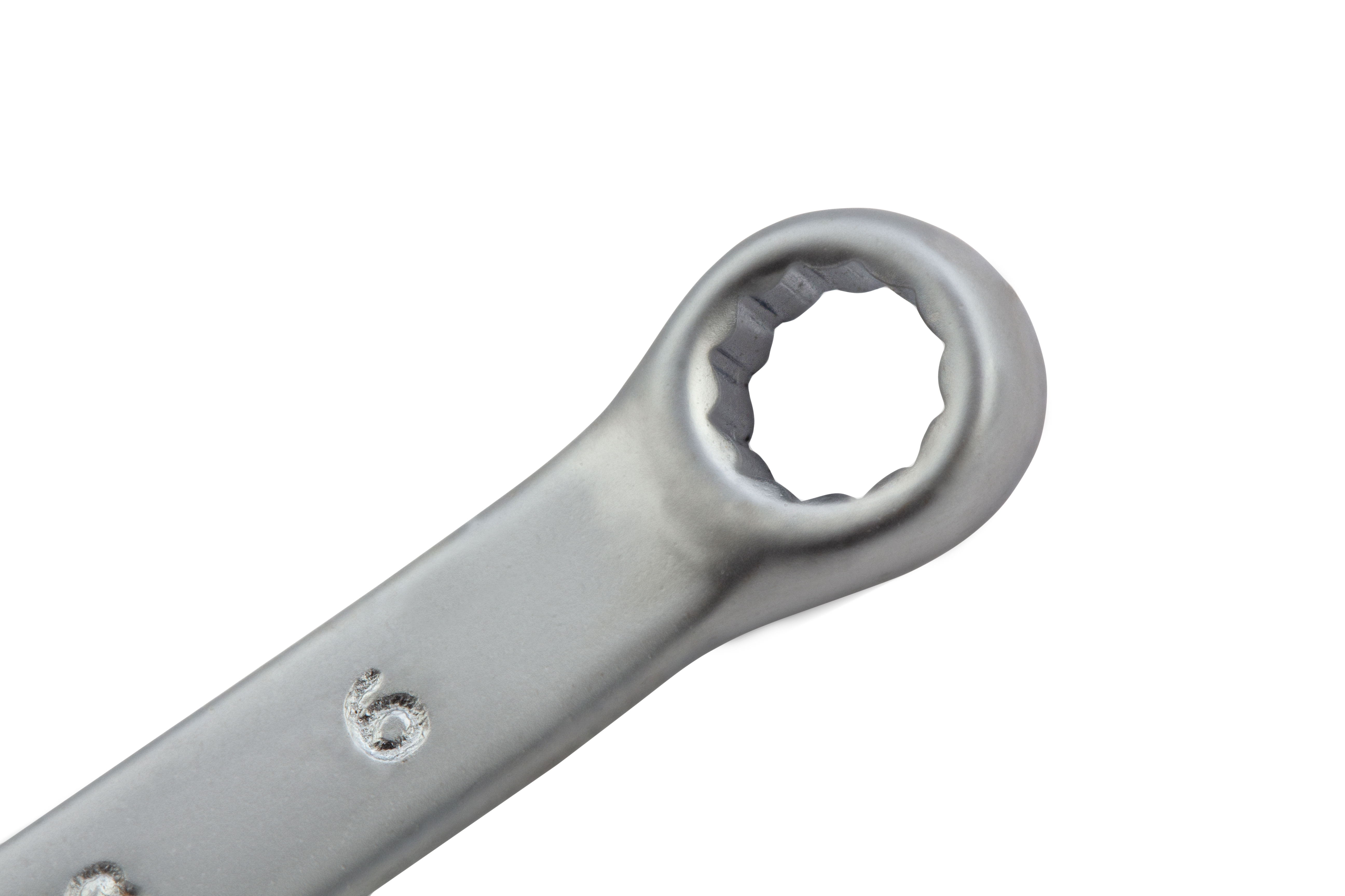 Комбинированный ключ Matrix 15102 размером 6 мм, из стали CrV, с покрытием «матовый хром», пригодится во время ремонтных работ дома или в гараже. С его помощью можно быстро монтировать и демонтировать крепежные элементы. Угол наклона кольцевого зева относительно плоскости инструмента составляет 15°, поэтому ключом удобно работать в труднодоступных местах.