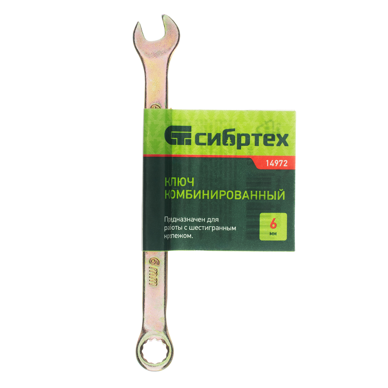 Ключ комбинированный, 6 мм, желтый цинк Сибртех в Москве