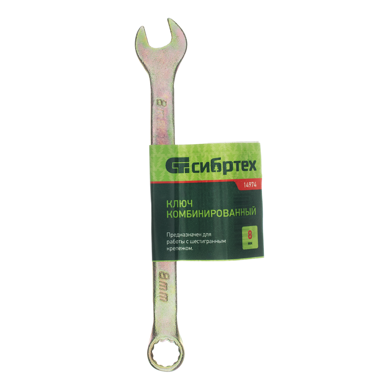 Ключ комбинированный, 8 мм, желтый цинк Сибртех в Москве