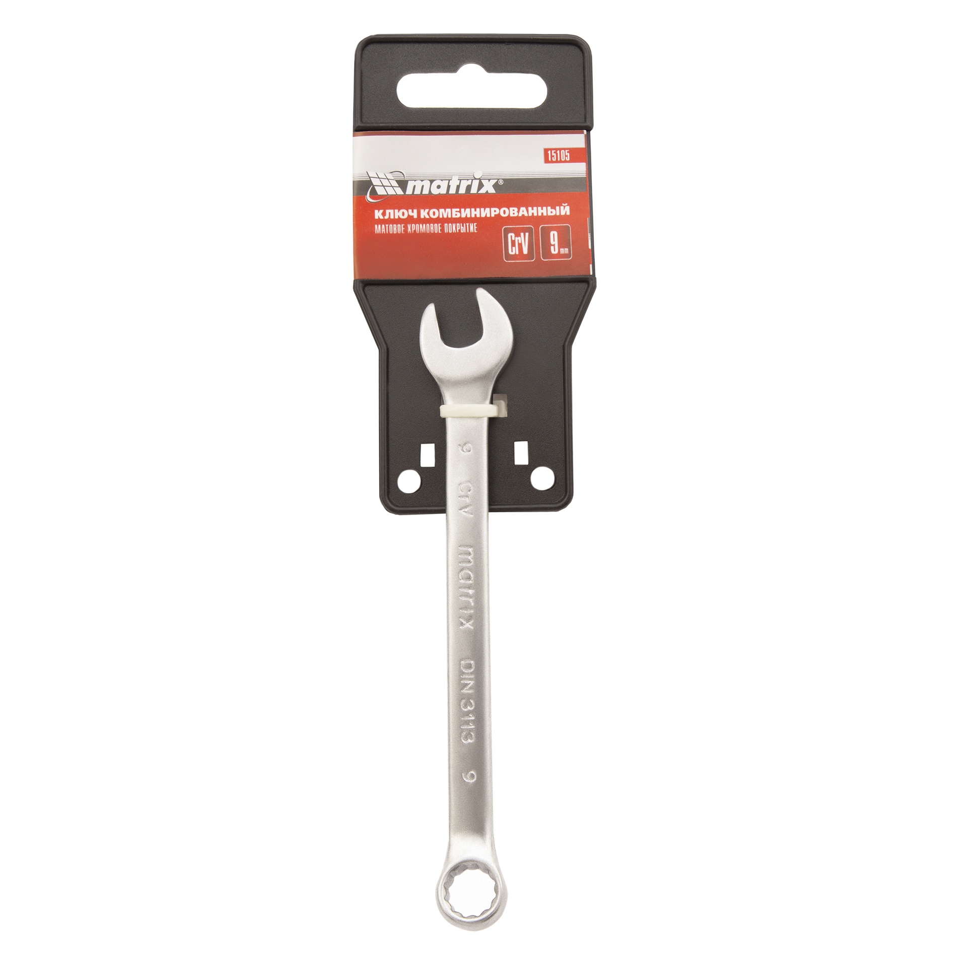 Ключ комбинированный, 9 мм, CrV, матовый хром Matrix