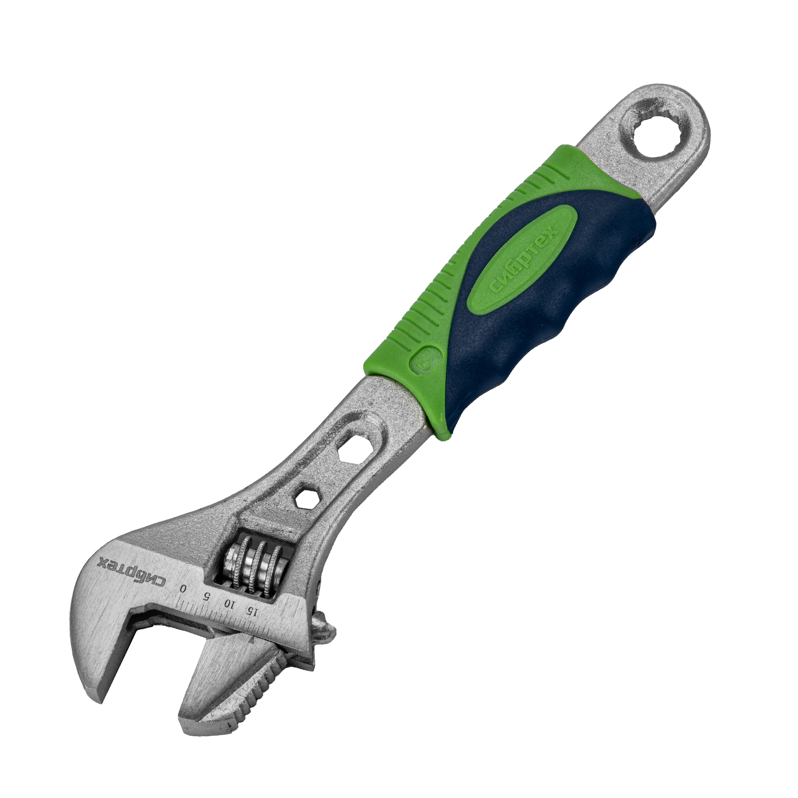 Разводной ключ Сибртех 15597 длиной 150 мм, с переставной губкой и двухкомпонентной рукояткой, предназначен для выполнения монтажных работ. Позволяет справляться с болтами разного размера и способен заменить целый арсенал гаечных ключей. Переставная губка с зазубринами позволяет использовать ключ для работы предметами без специального профиля, например, трубами.