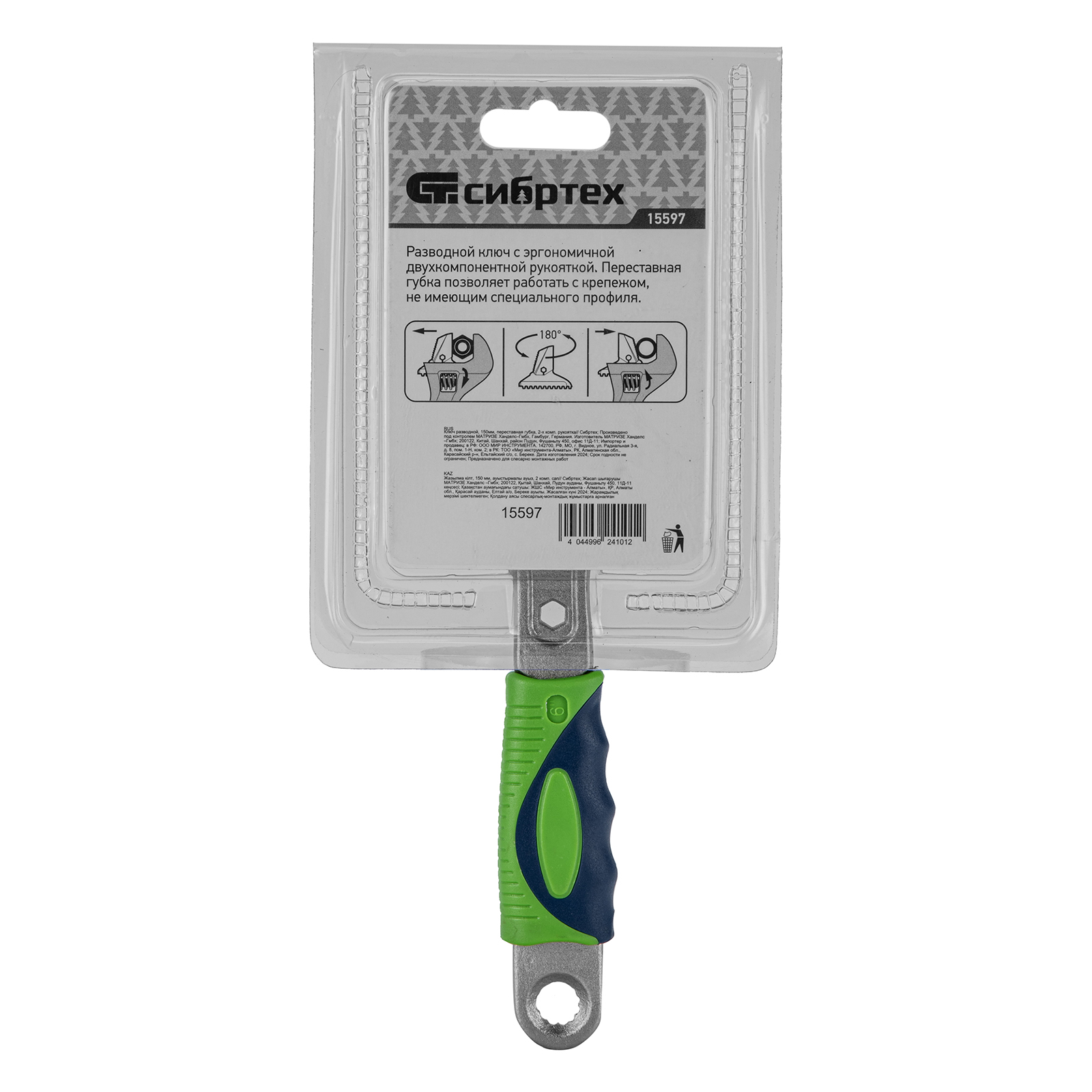 Ключ разводной, 150мм, переставная губка, 2-х комп. рукоятка Сибртех в Москве