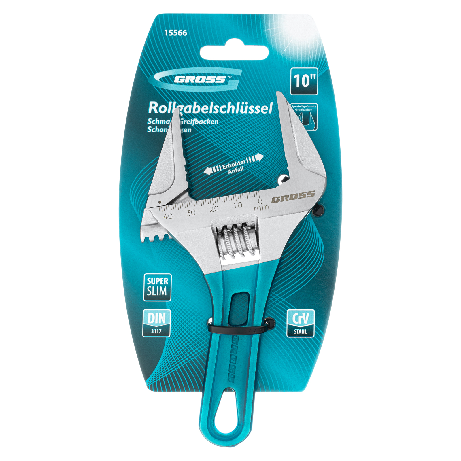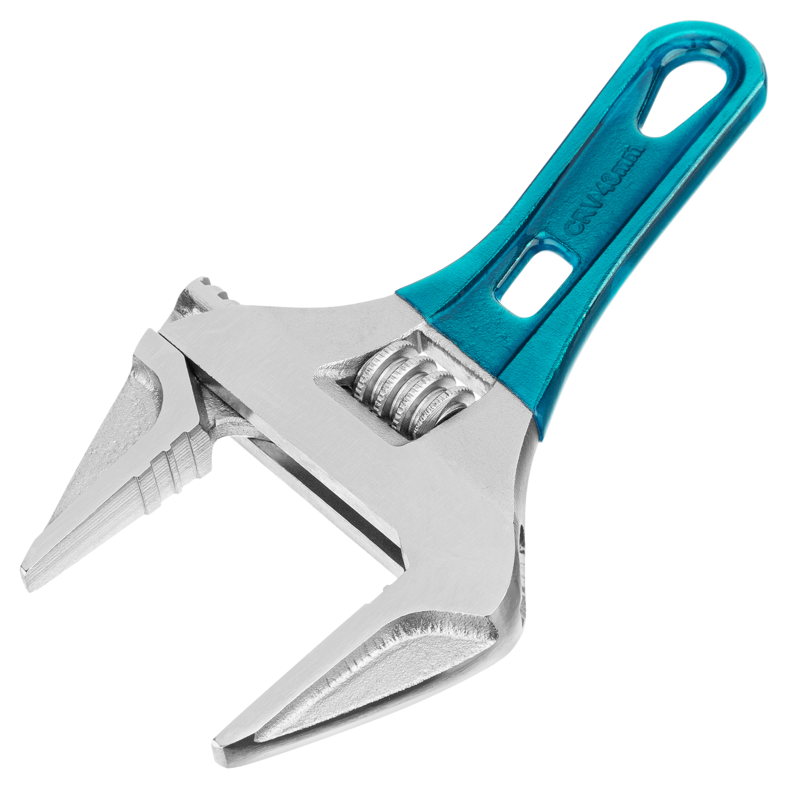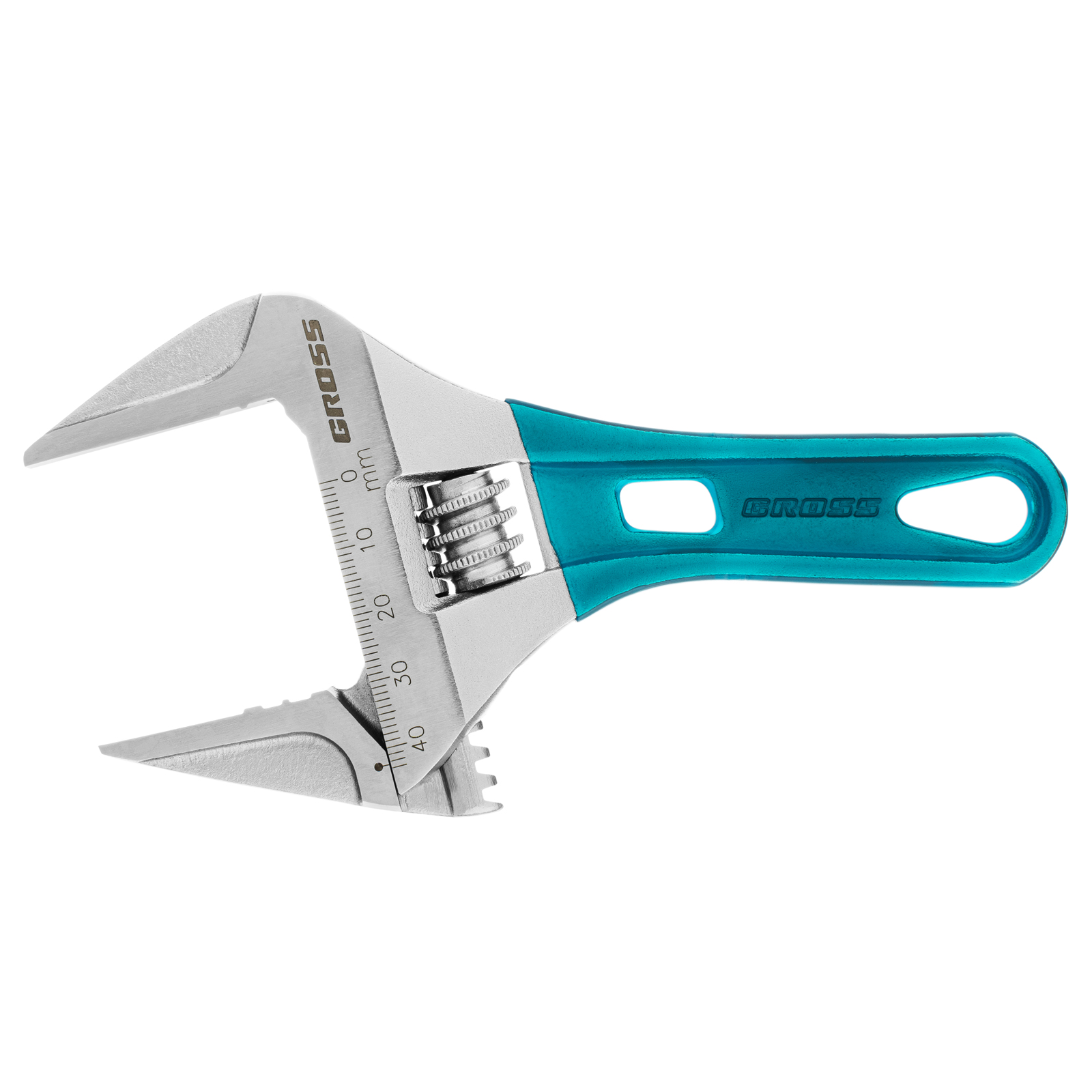 Разводной ключ Gross 15566 длиной 160 мм, из стали CrV, с укороченной ручкой и широким диапазоном раскрытия зева до 43 мм, подходит для работы как с мелкими, так и с крупными крепежными элементами. Губки раскрываются на 50% больше, чем у стандартных ключей. Ребристая рабочая поверхность губок обеспечивает надежный захват деталей и повышает точность работы.