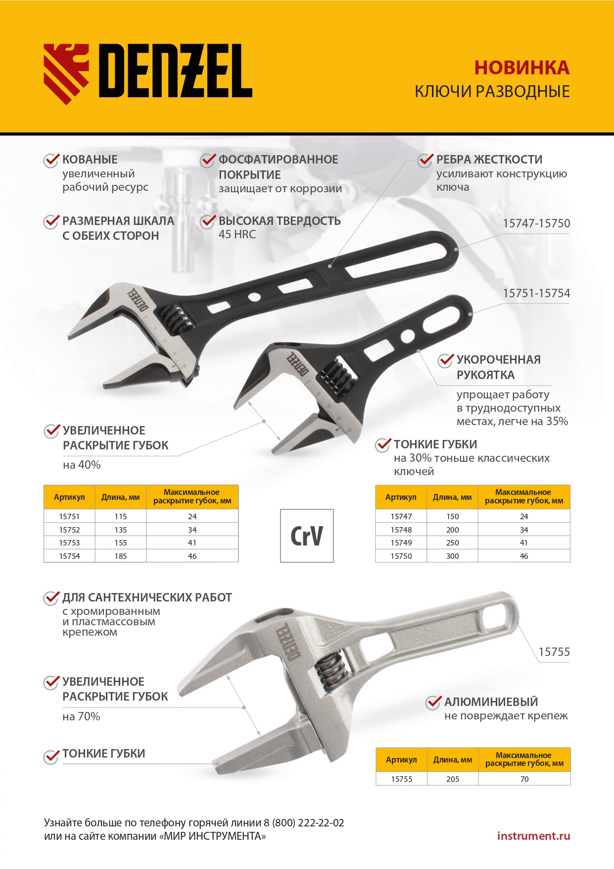 - Удобная эксплуатация — метрическая линейка на ключе помогает выставить нужный размах зева.