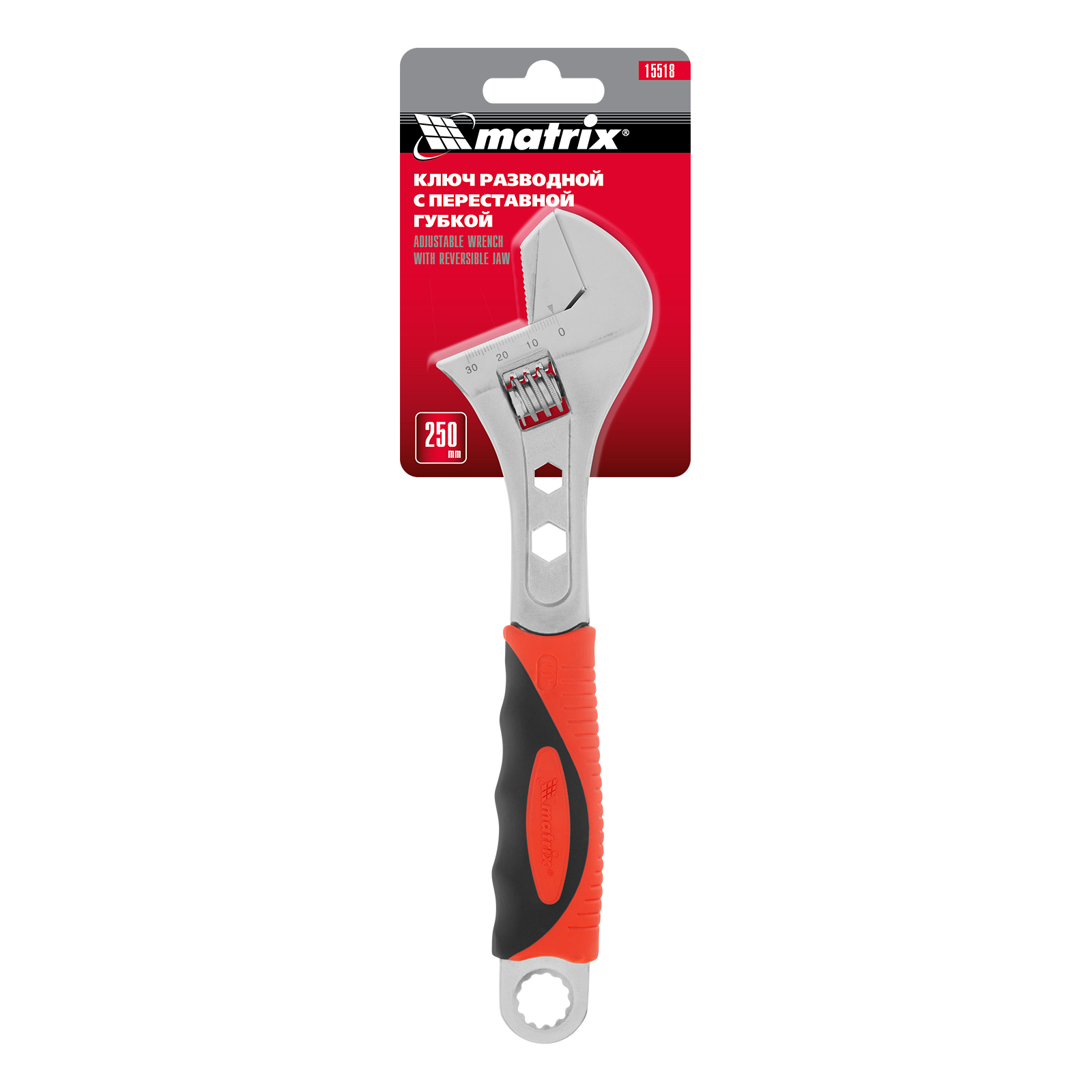 Ключ разводной, 250 мм, переставная губка, двухкомпонентная рукоятка Matrix в Москве