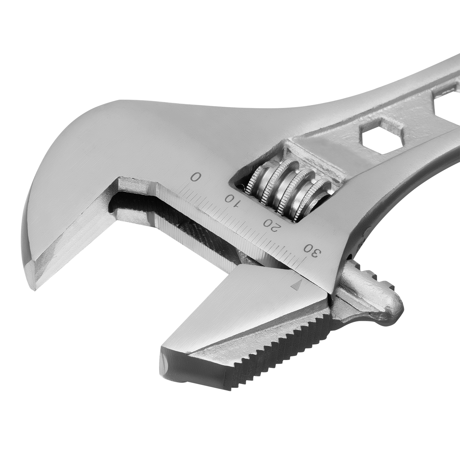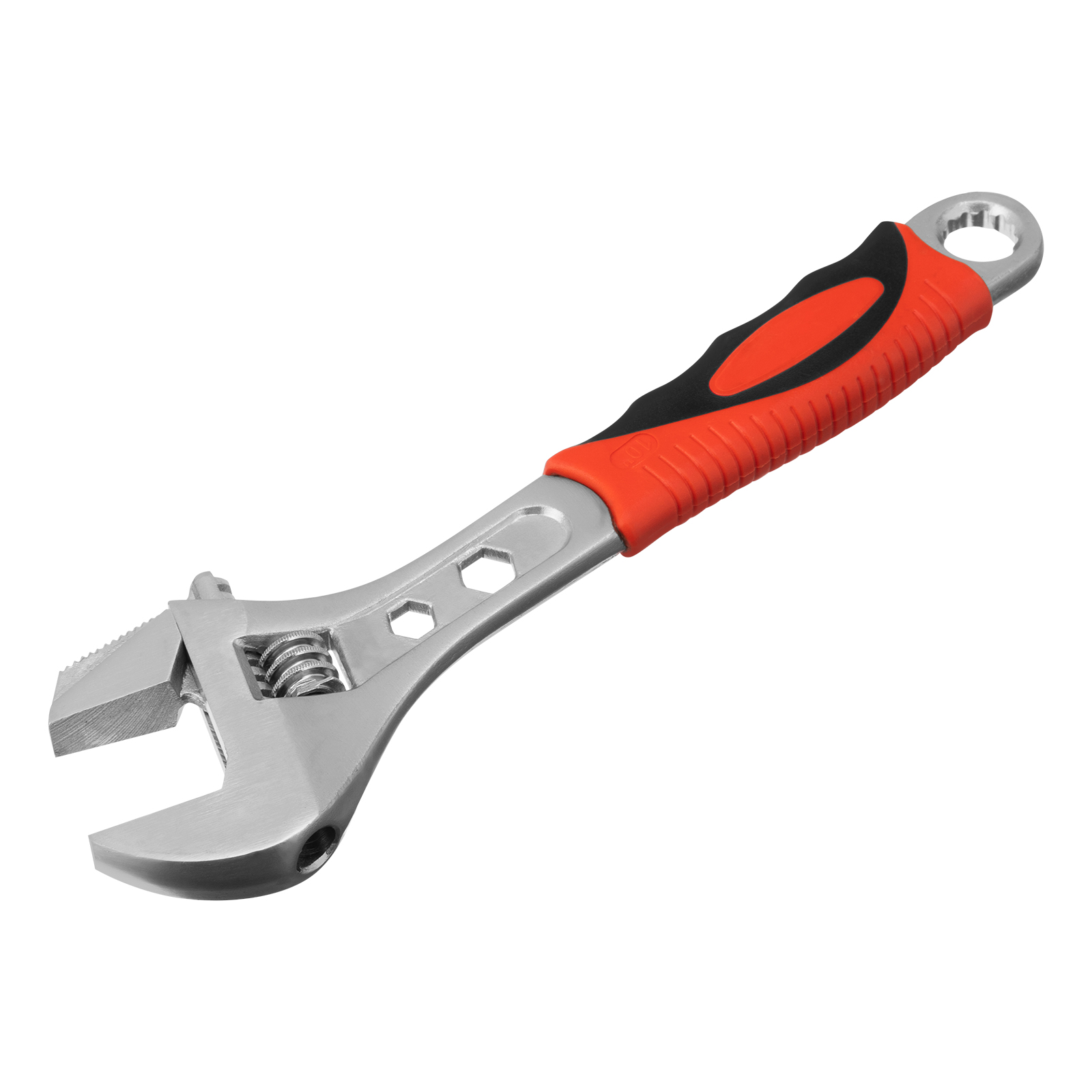 Разводной ключ Matrix 15518 длиной 250 мм, с переставной губкой и двухкомпонентной рукояткой, предназначен для выполнения монтажных работ. Способен заменить целый арсенал гаечных ключей, поскольку справляется с болтами разного размера. Переставная губка с зазубринами позволяет использовать ключ для работы предметами без специального профиля, например, трубами.