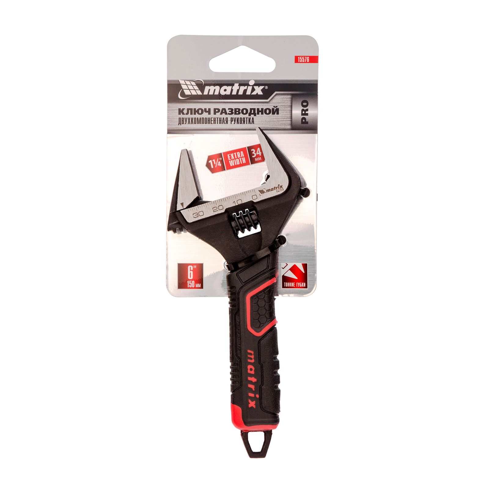 Ключ разводной, тонкие губки, фосфатированный, двухкомпонентная рукоятка, 150 мм, PRO Matrix в Москве