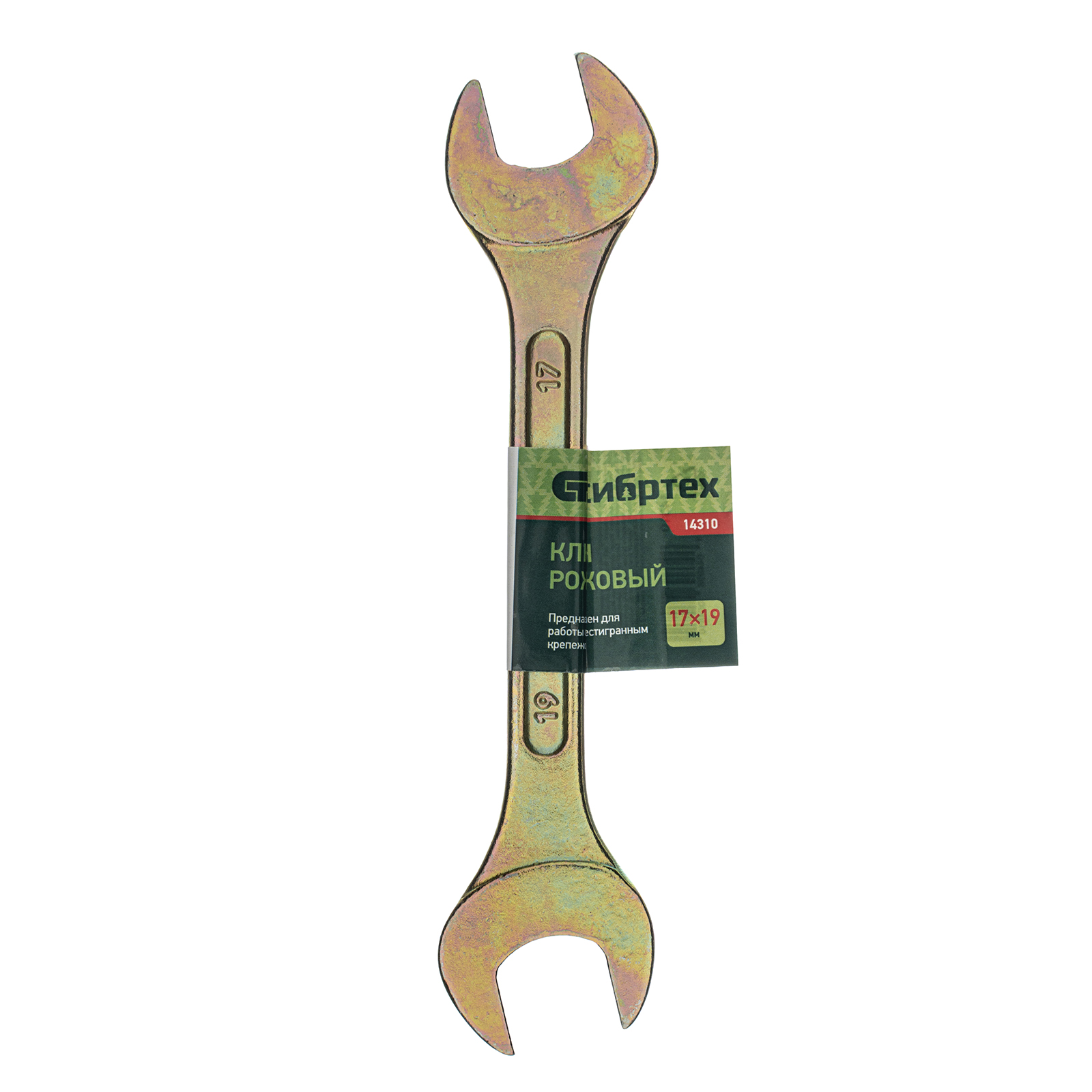 Ключ рожковый, 17 х 19 мм, желтый цинк Сибртех в Москве