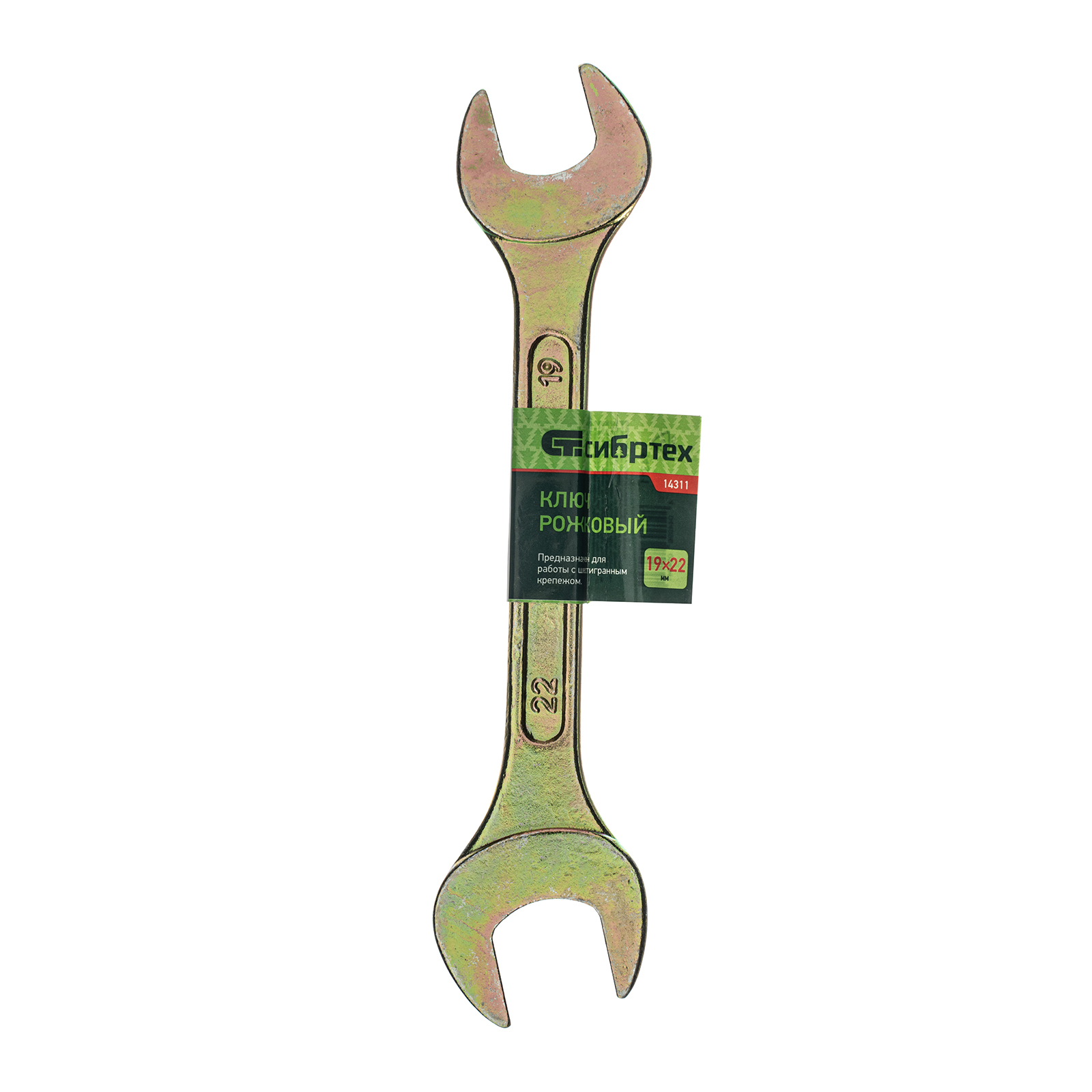 Ключ рожковый, 19 х 22 мм, желтый цинк Сибртех в Москве