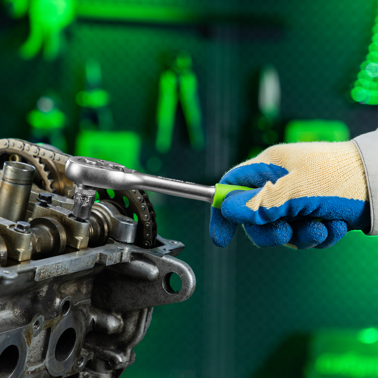 Ключ-трещотка Сибртех 14022 с присоединительным квадратом 3/8", функцией быстрого сброса и храповым механизмом с 45 зубьями, имеет покрытие «матовый хром» и используется с торцевыми головками, имеющими посадочное гнездо соответствующего размера. Предназначен для закручивания и раскручивания резьбового крепежа. Храповой механизм с 45 зубцами обеспечивает плавное вращение. Ключ применяется для ремонта автомобилей, техники и оборудования, пригодится также дома и на даче.