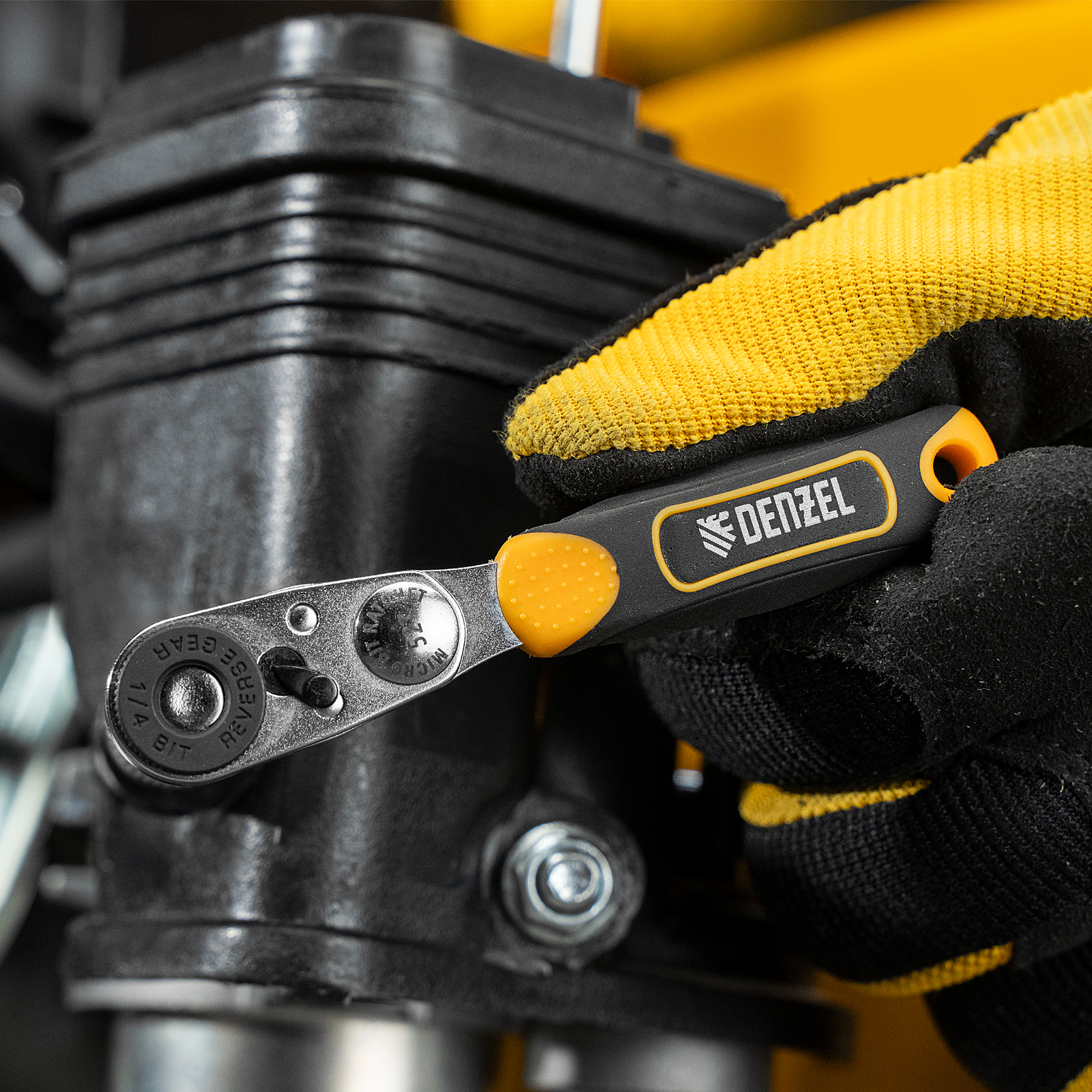 Ключ-трещотка для бит 1/4", 52 зуба, CrMo, адаптер для торцевых головок Denzel в Москве