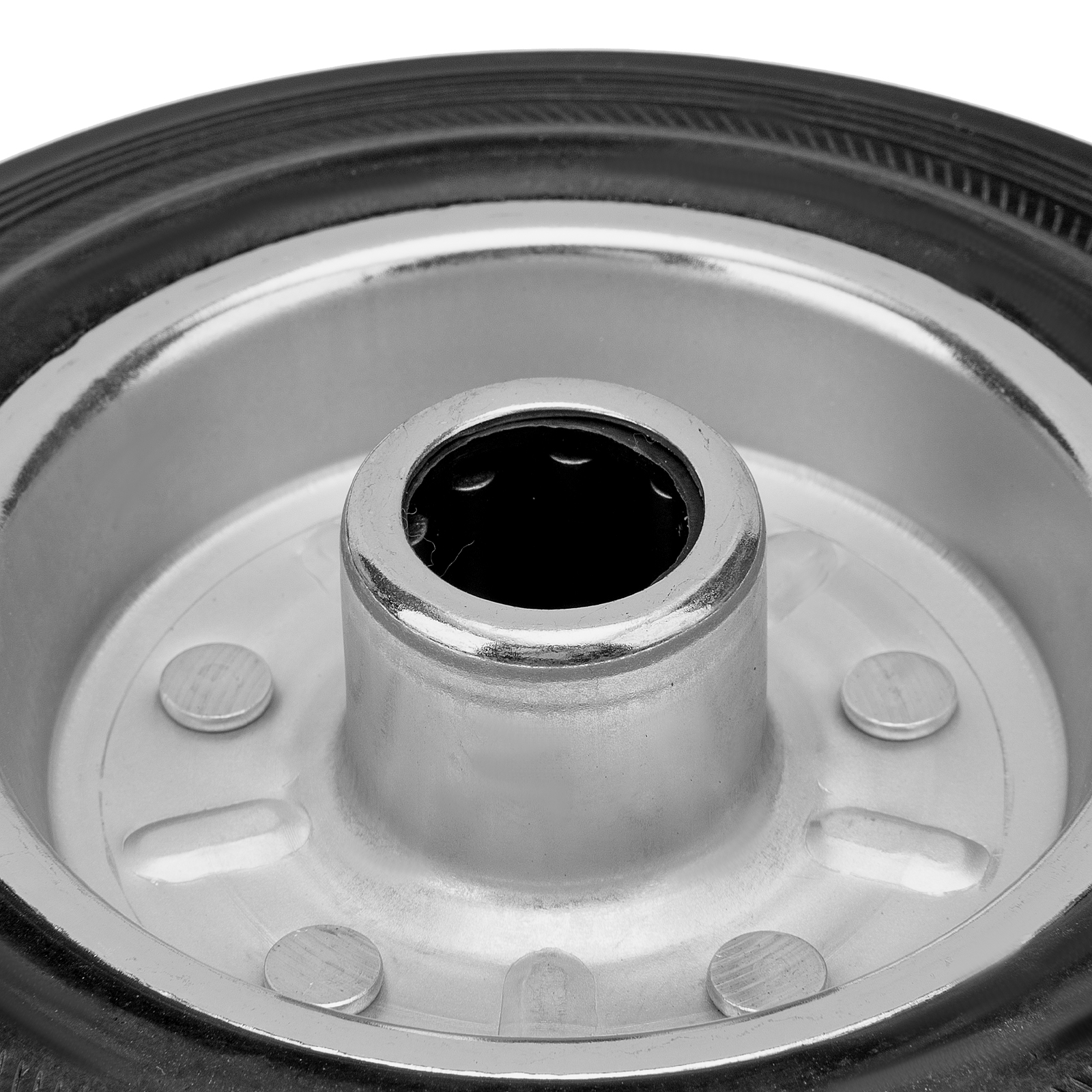 • Универсальность — контактная поверхность выполнена из прочной резины, поэтому колесо может применяться на различных покрытиях, долгое время сохраняя рабочие качества.
