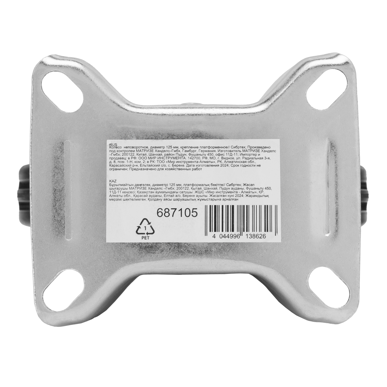 Колесо неповоротное D 125 мм, крепление платформенное Сибртех в Москве