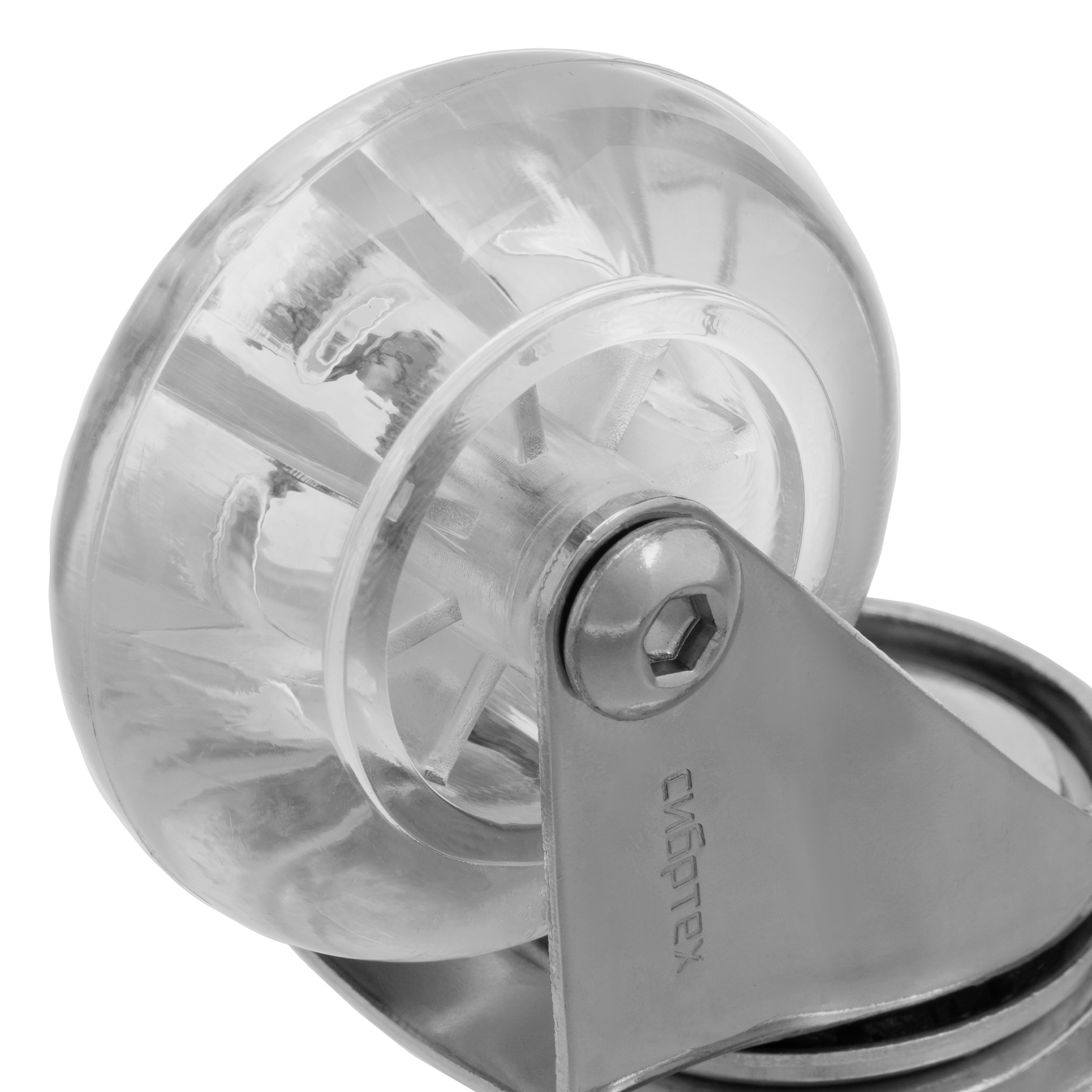 Колесо ПУ прозрачное поворотное d-50 мм, крепление платформенное Сибртех в Москве