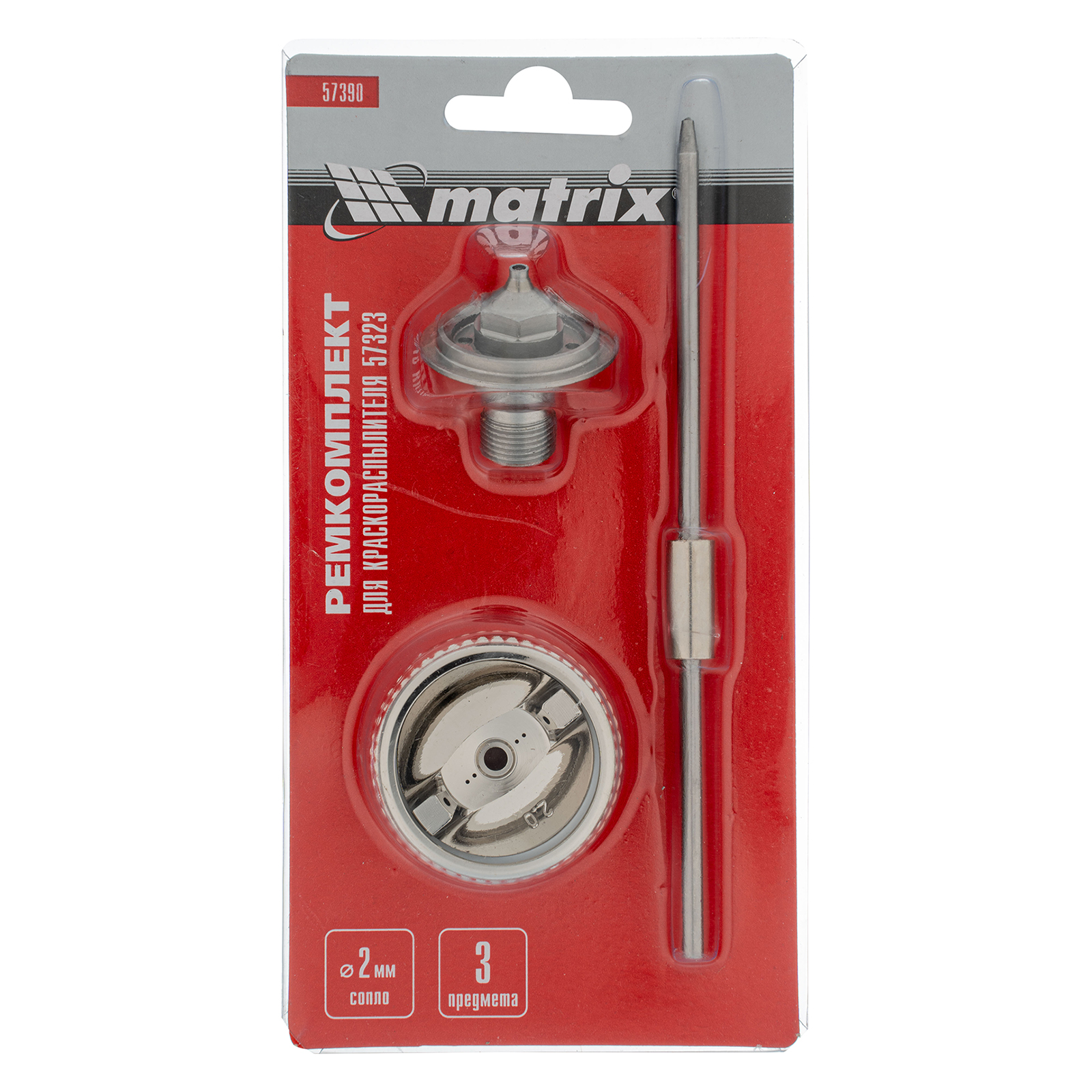 Комплект Matrix 57390 предназначен для краскораспылителя Matrix 57323 и включает в себя 3 предмета: сопло диаметром 2 мм, иглу и форсунку. Их можно использовать для ремонта инструмента или расширения его функциональных возможностей.