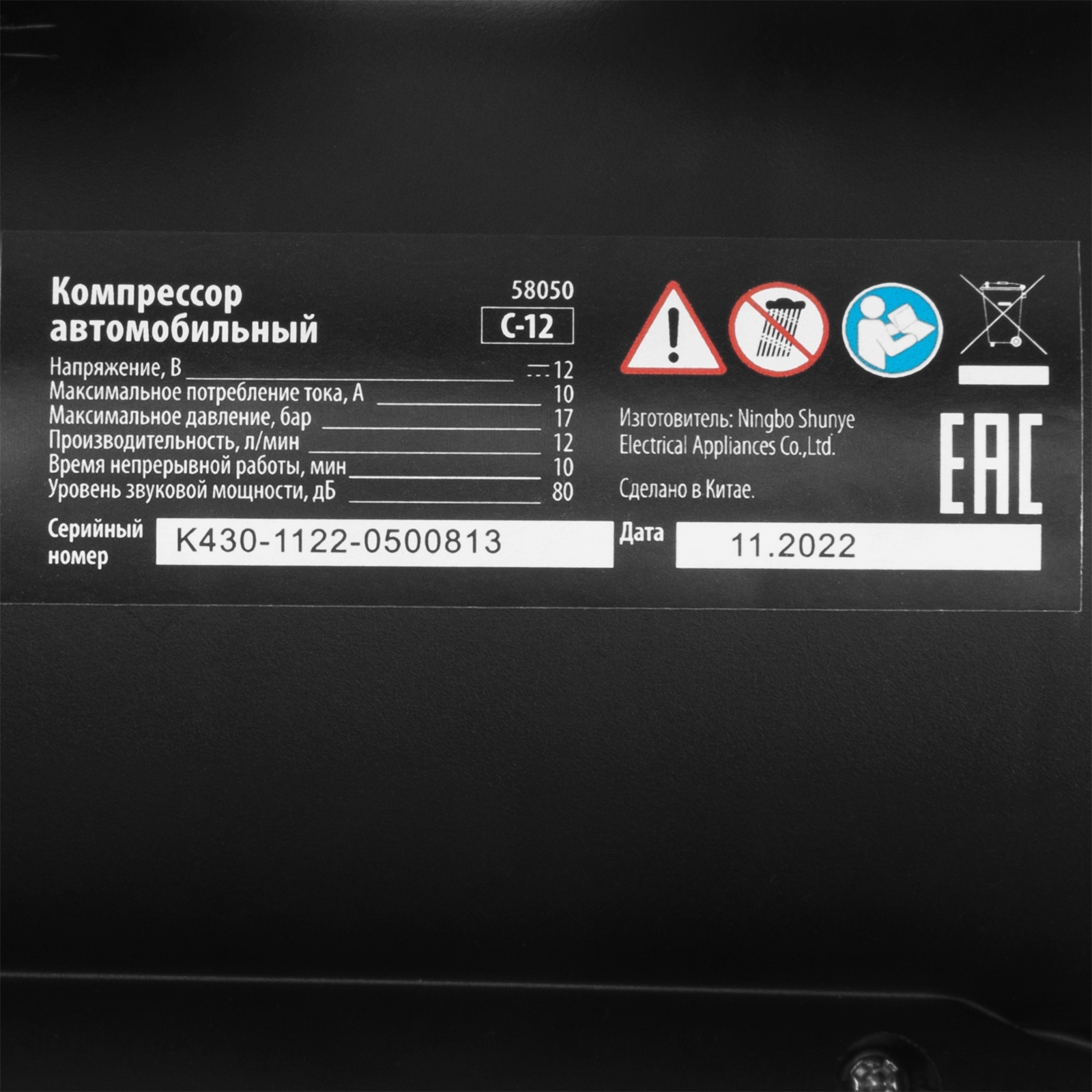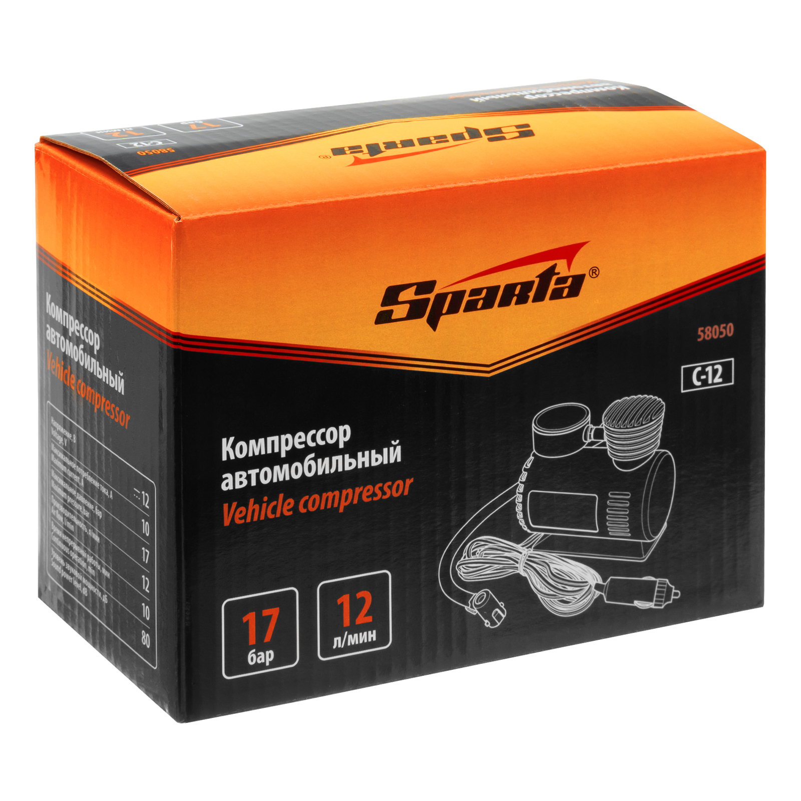 Компрессор автомобильный С-12, 12 В, 17 атм, 12 л/мин Sparta в Москве