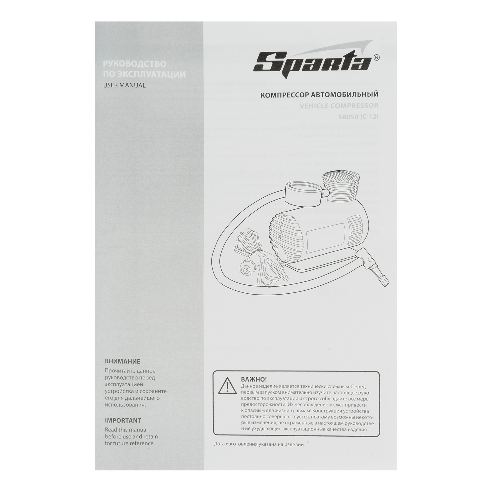 Автомобильный компрессор Sparta C-12 58050 производительностью 12 л/мин обеспечивает давление до 17 атмосфер и питается от прикуривателя 12 В. Используется для накачки шин, а также мячей, матрасов, лодок и другого инвентаря. Компрессор поршневого типа способен накачать колесо R16 за 10 минут. Устройство пригодится в поездке, на даче, во время отдыха на природе.