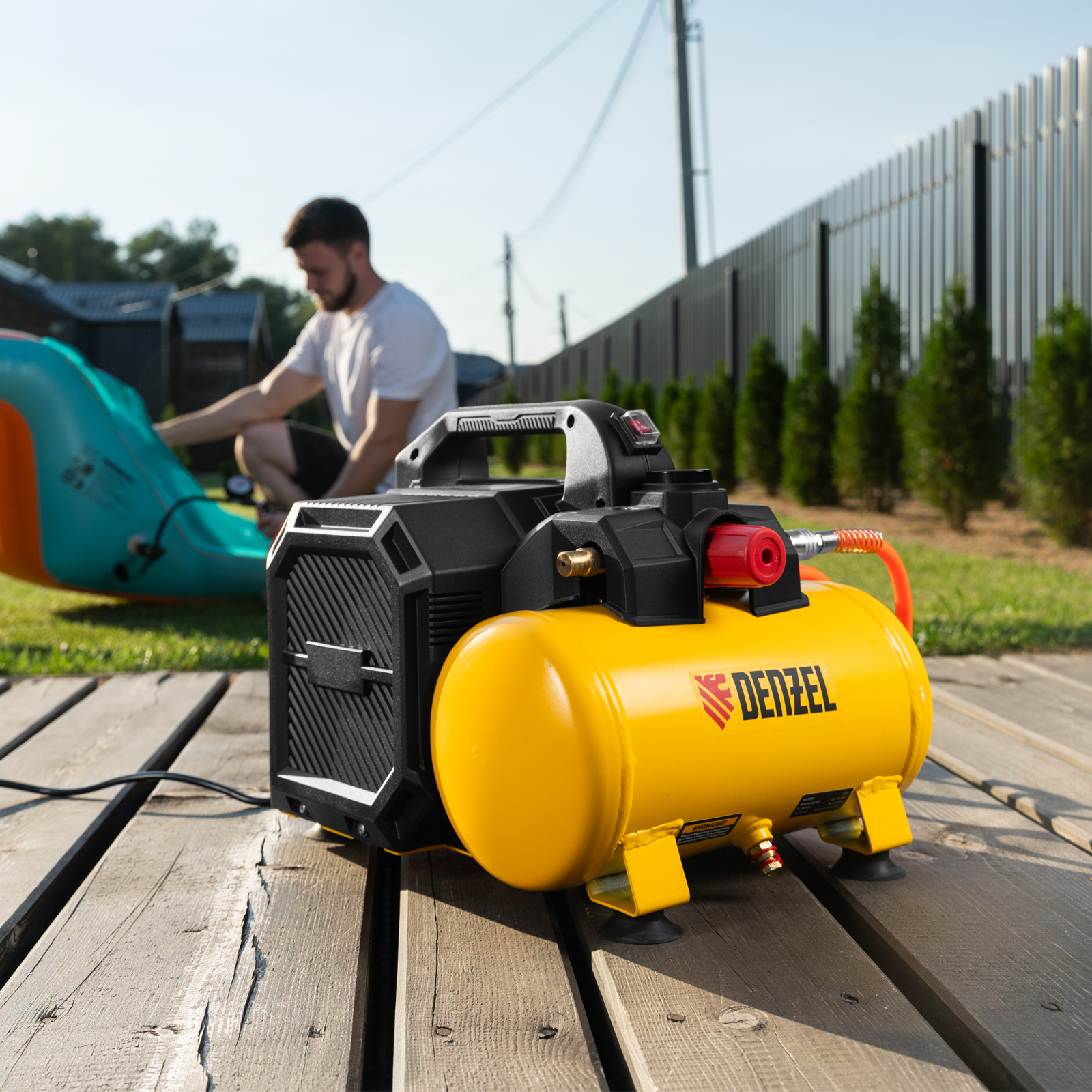 Компрессор безмасляный малошумный Denzel DLS750/6 58019 мощностью 750 Вт, с ресивером объемом 6 л, имеет производительность на входе 140 л/мин и предназначен для обеспечения пневмоинструмента сжатым воздухом. Оптимален для работы с краскораспылителем и продувочным пистолетом, т.к. воздух на выходе не содержит частиц масла. Рабочий узел закрыт сплошным кожухом, благодаря чему уровень шума во время работы не превышает 65 дБ. Компрессор можно использовать в жилом помещении и на дачном участке.