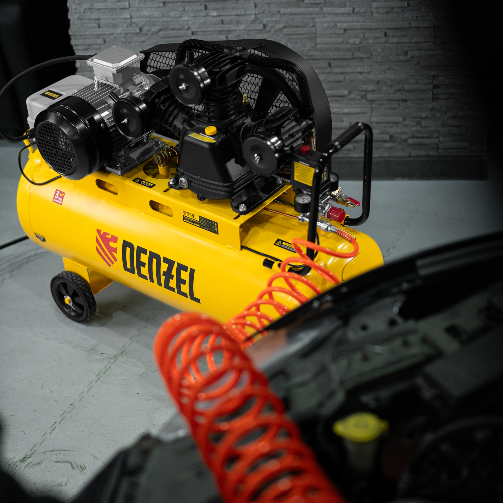 Компрессор воздушный BCW3000-T/100, ременный привод, 3.0 кВт, 100 литров, 520 л/мин Denzel в Москве