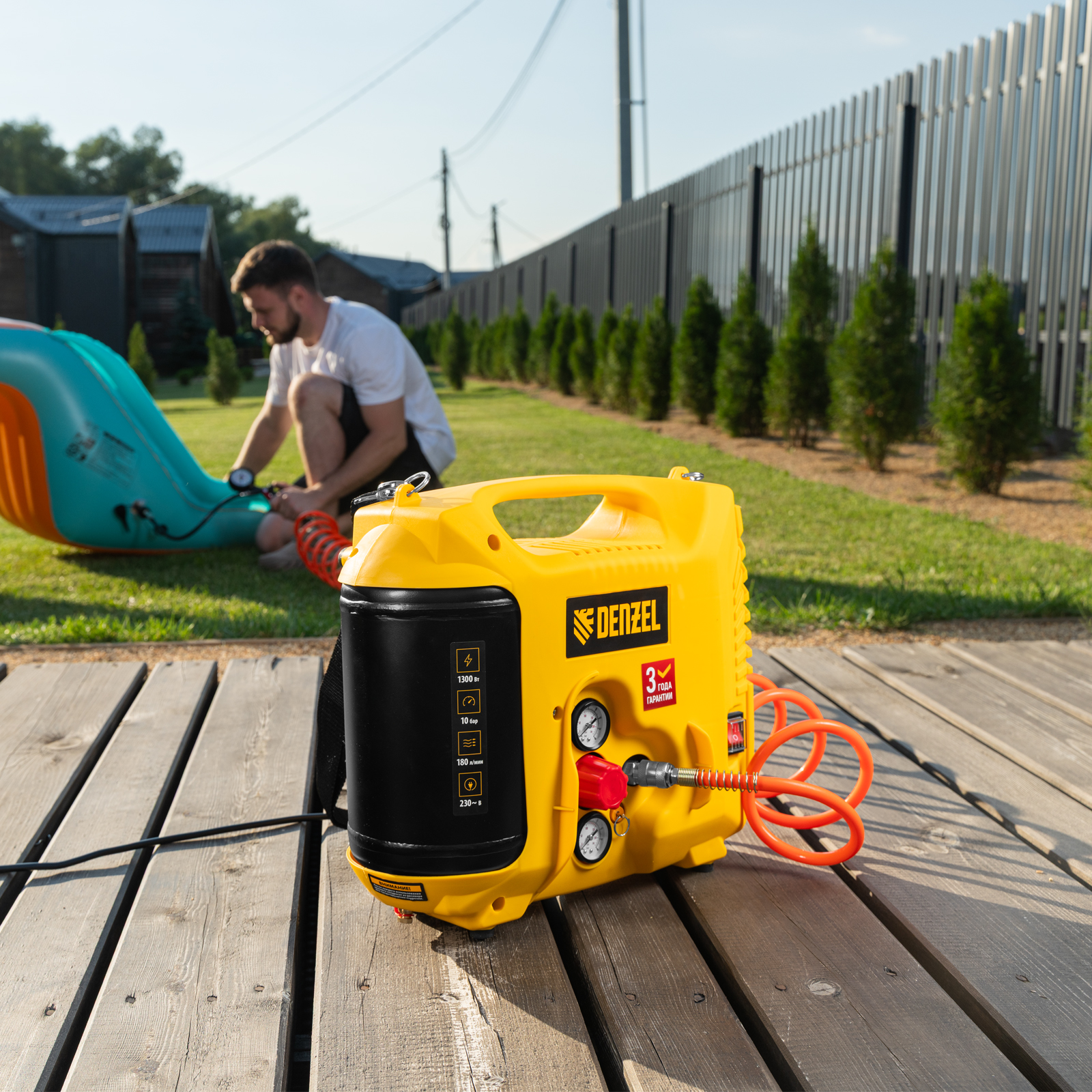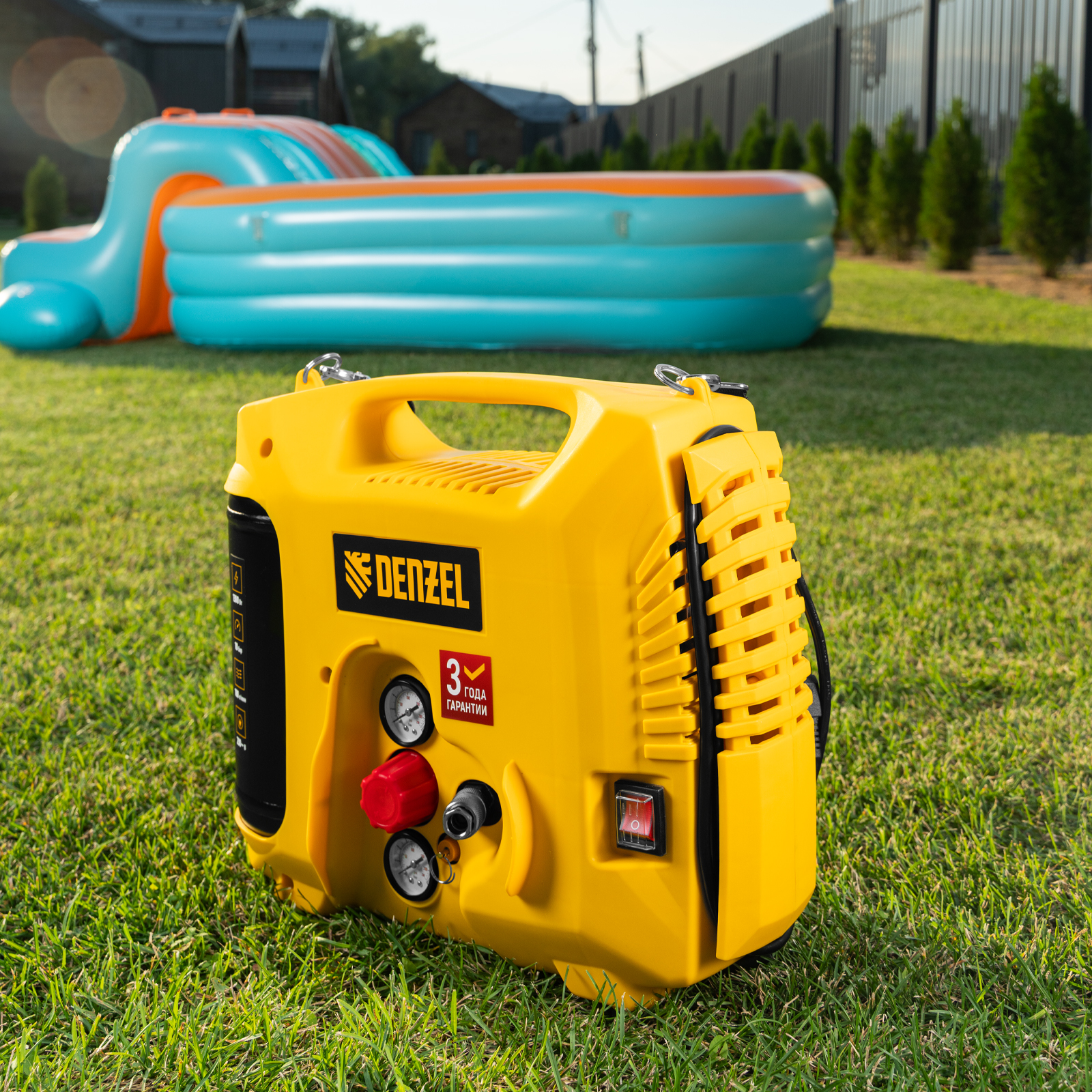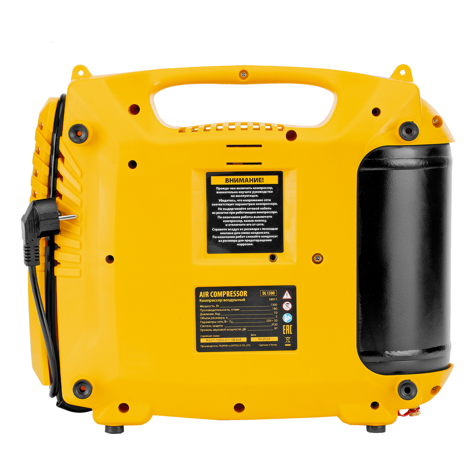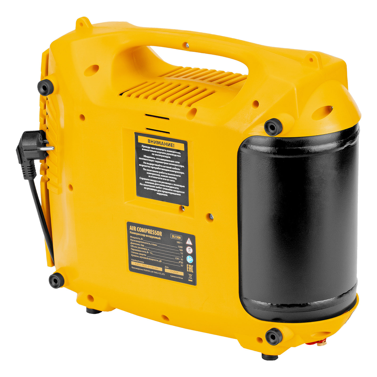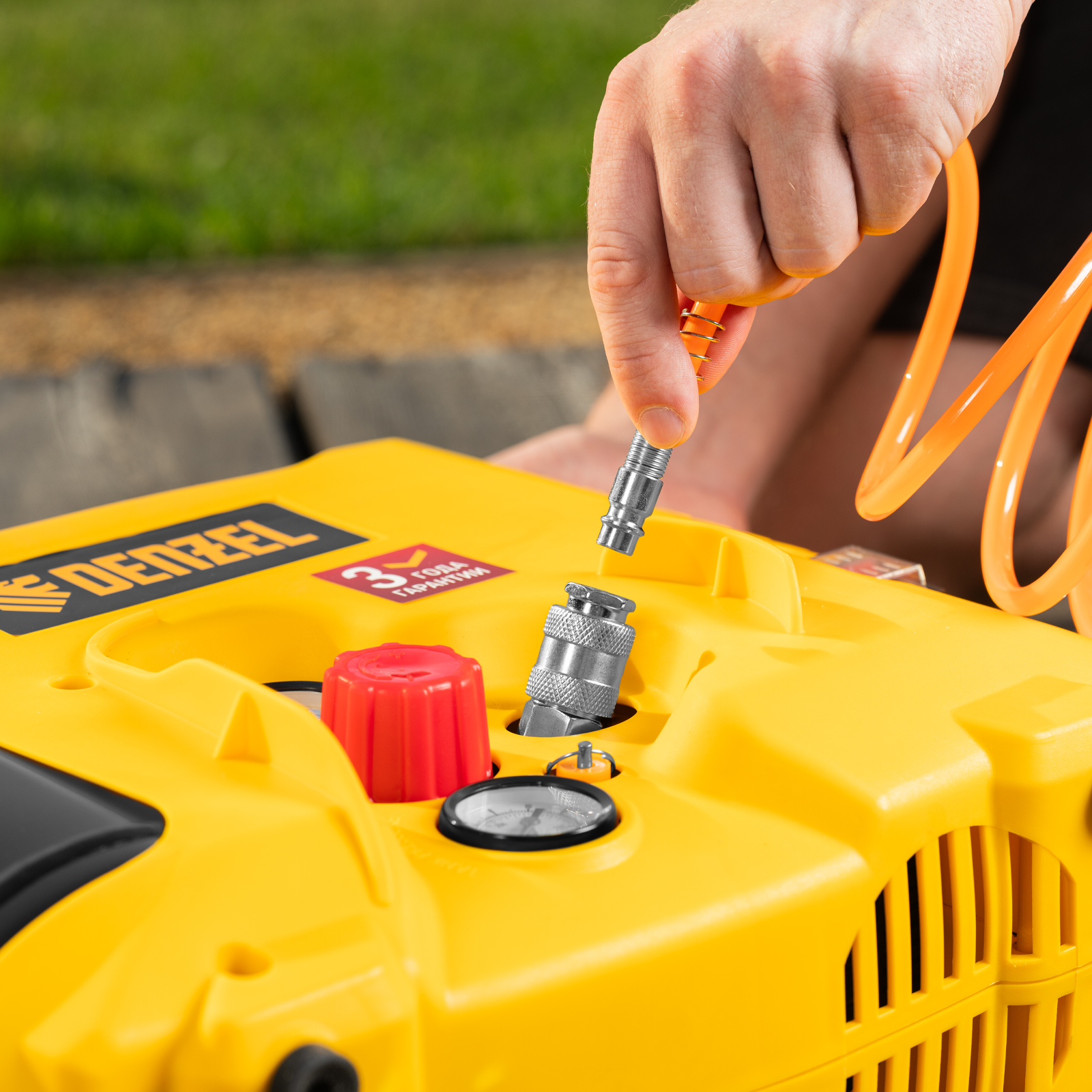 • Ресивер объемом 5 л — несмотря на портативное исполнение, устройство накапливает достаточный запас сжатого воздуха для бесперебойной работы.