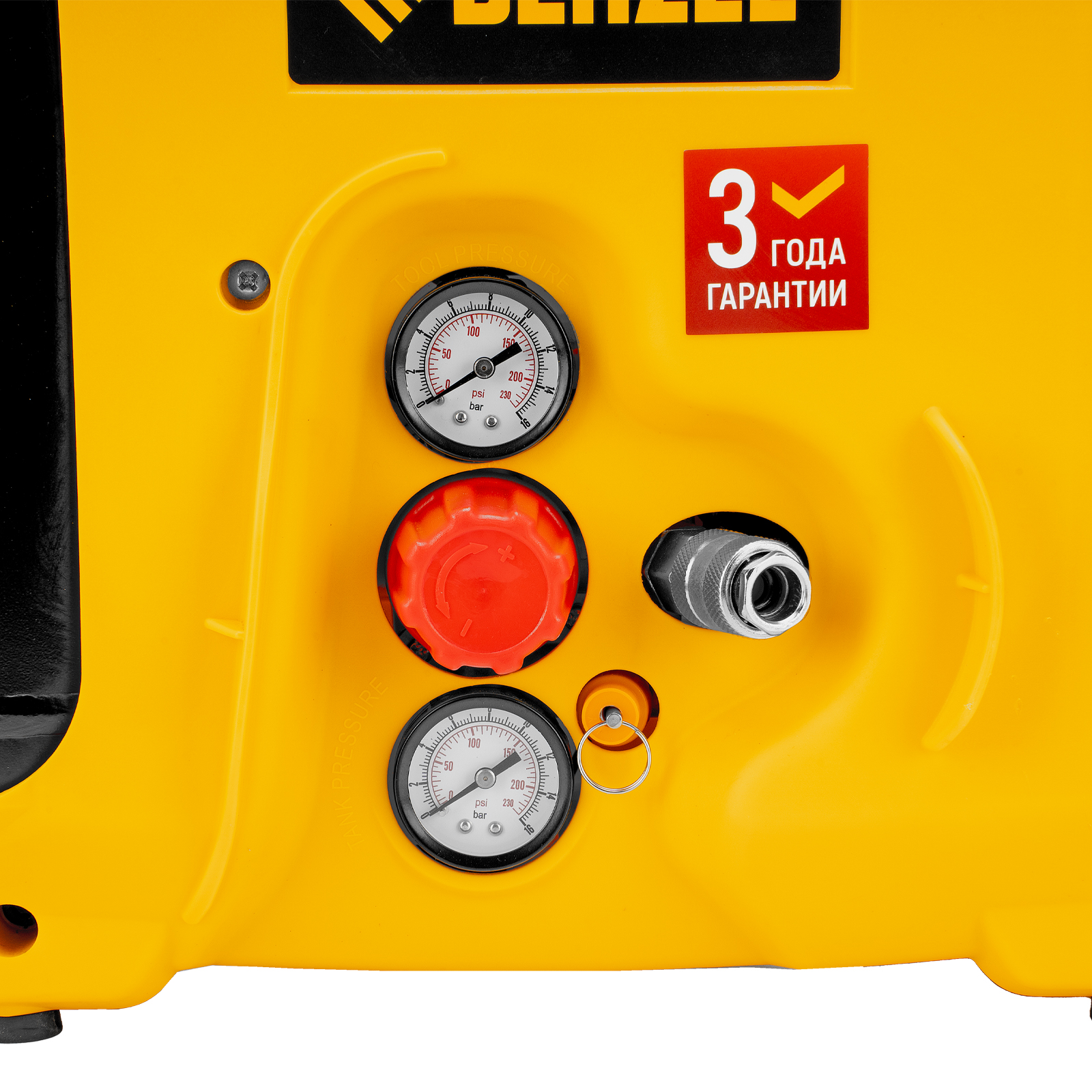 • Контроль давления в ресивере и пневмолинии — конструкцией предусмотрено 2 манометра.