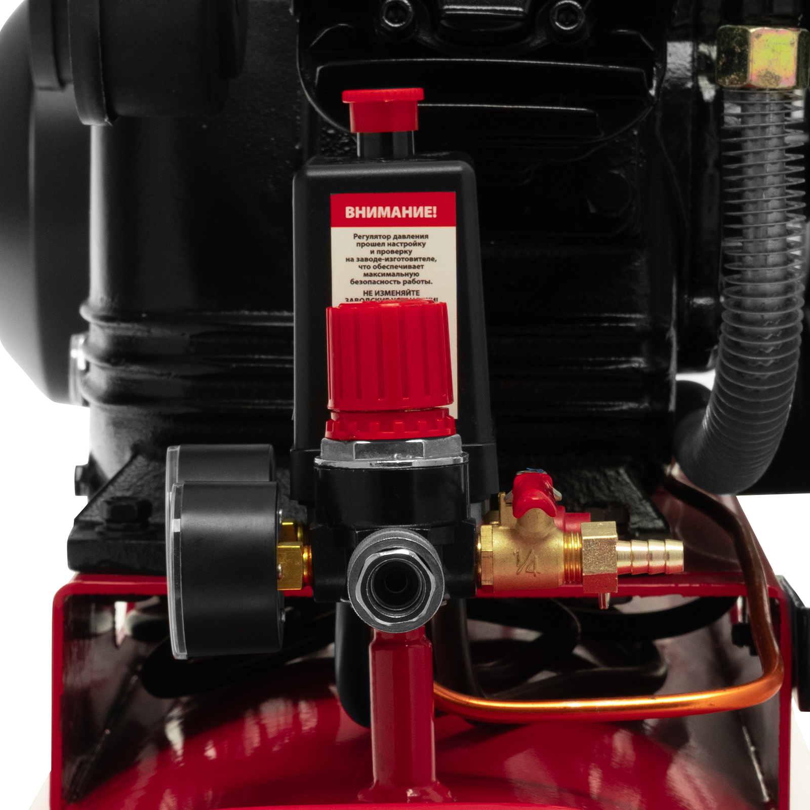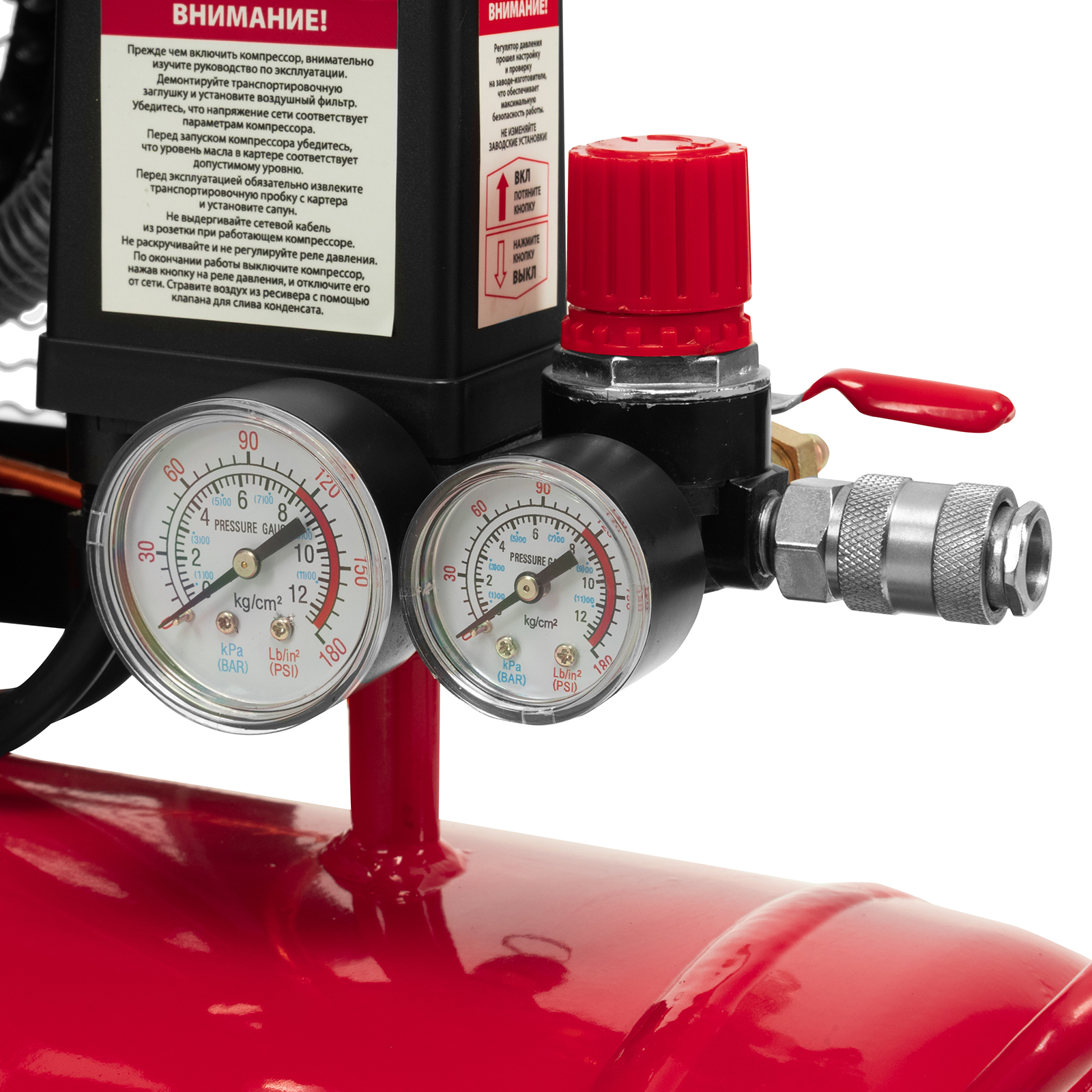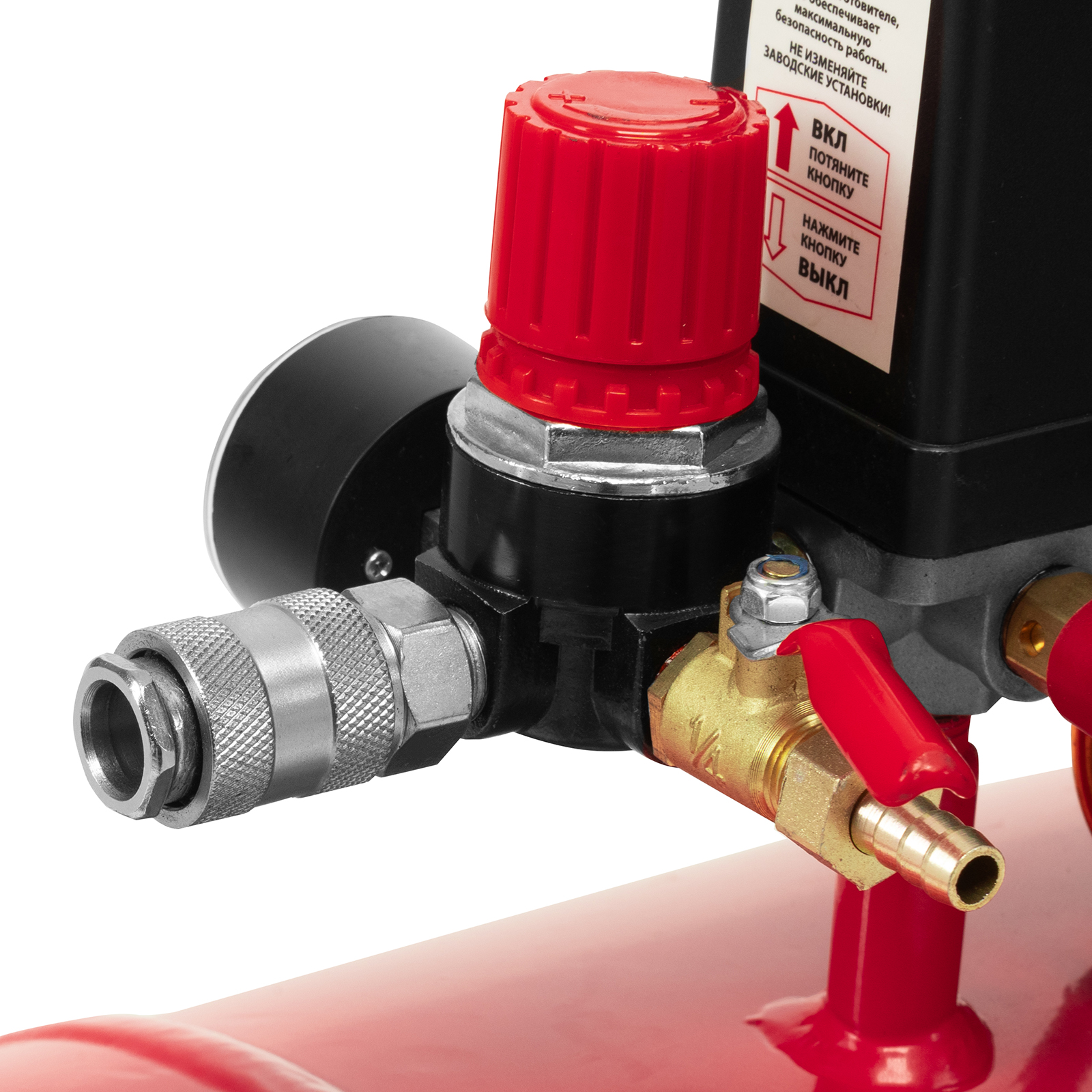 - Безопасная эксплуатация — предохранительный клапан не допускает превышения максимально допустимого давления в ресивере.