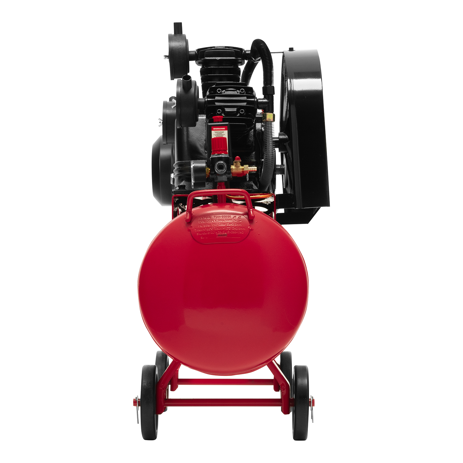 - Мобильность — колеса и рукоятки облегчают перемещение компрессора по рабочей площадке.
