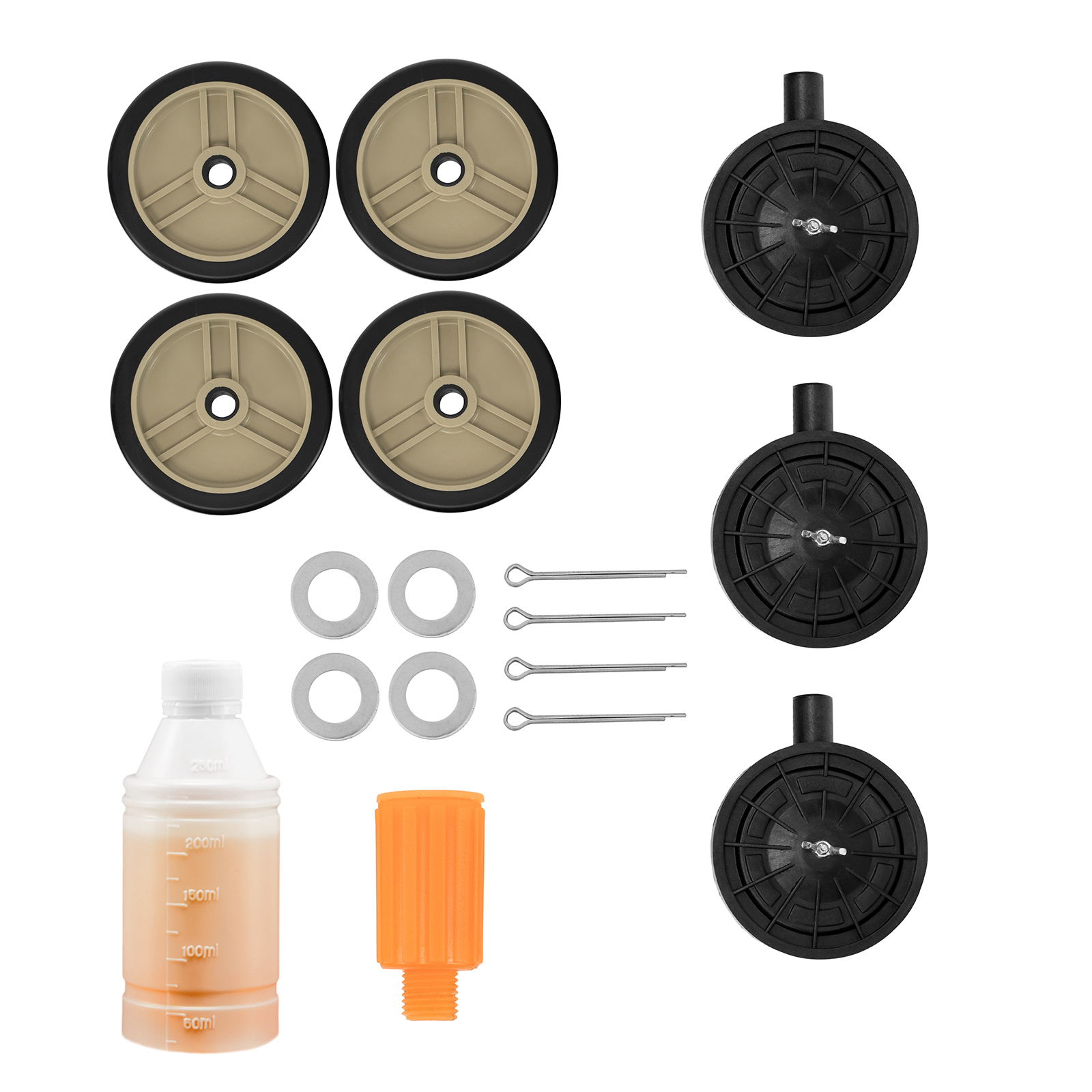 Компрессор - 1 штКолесо - 4 штКомплект крепежа - 1 штСапун - 1 штМасло компрессорное минеральное марка DAA100 - 500 млРуководство по эксплуатации - 1 штГарантийный талон - 1 шт |