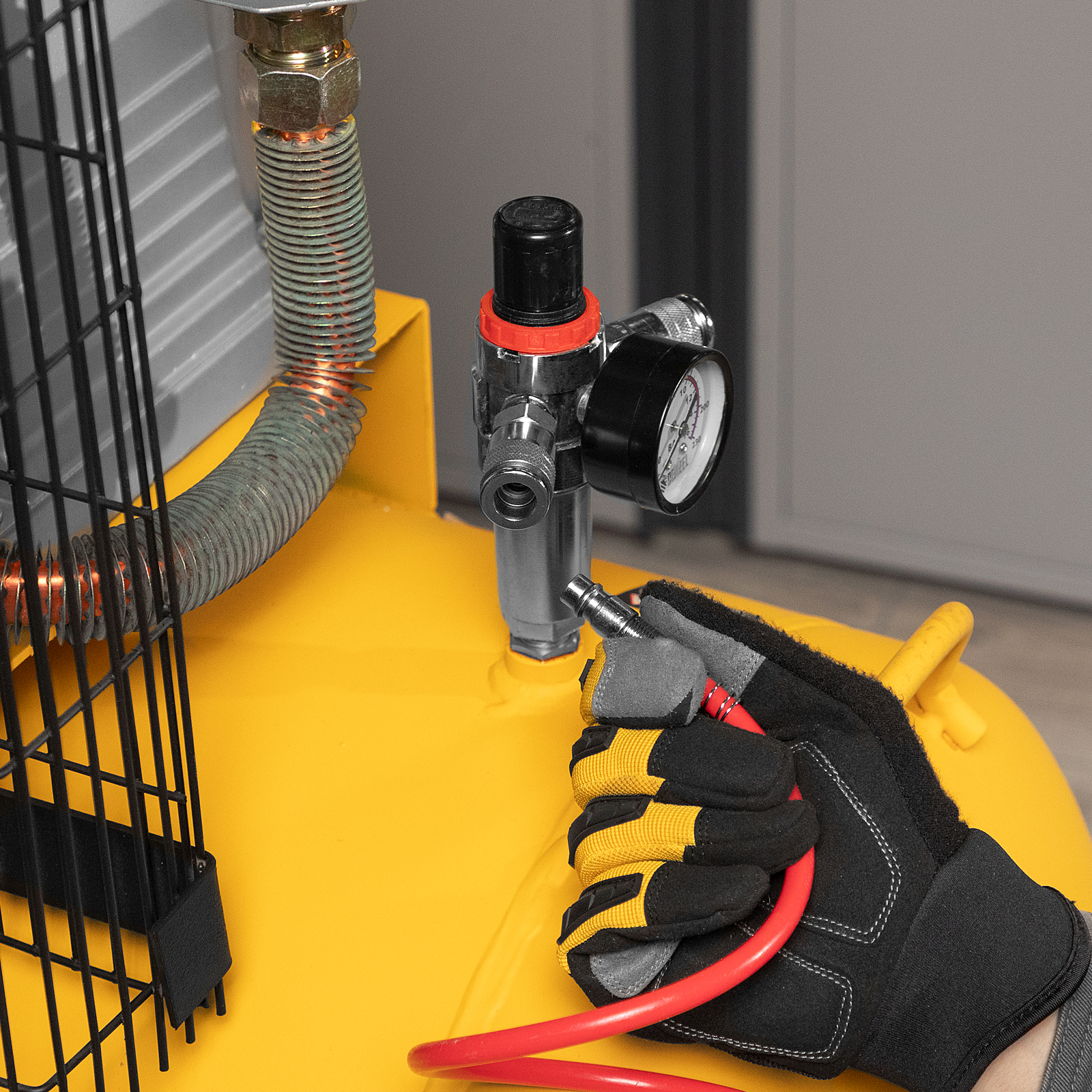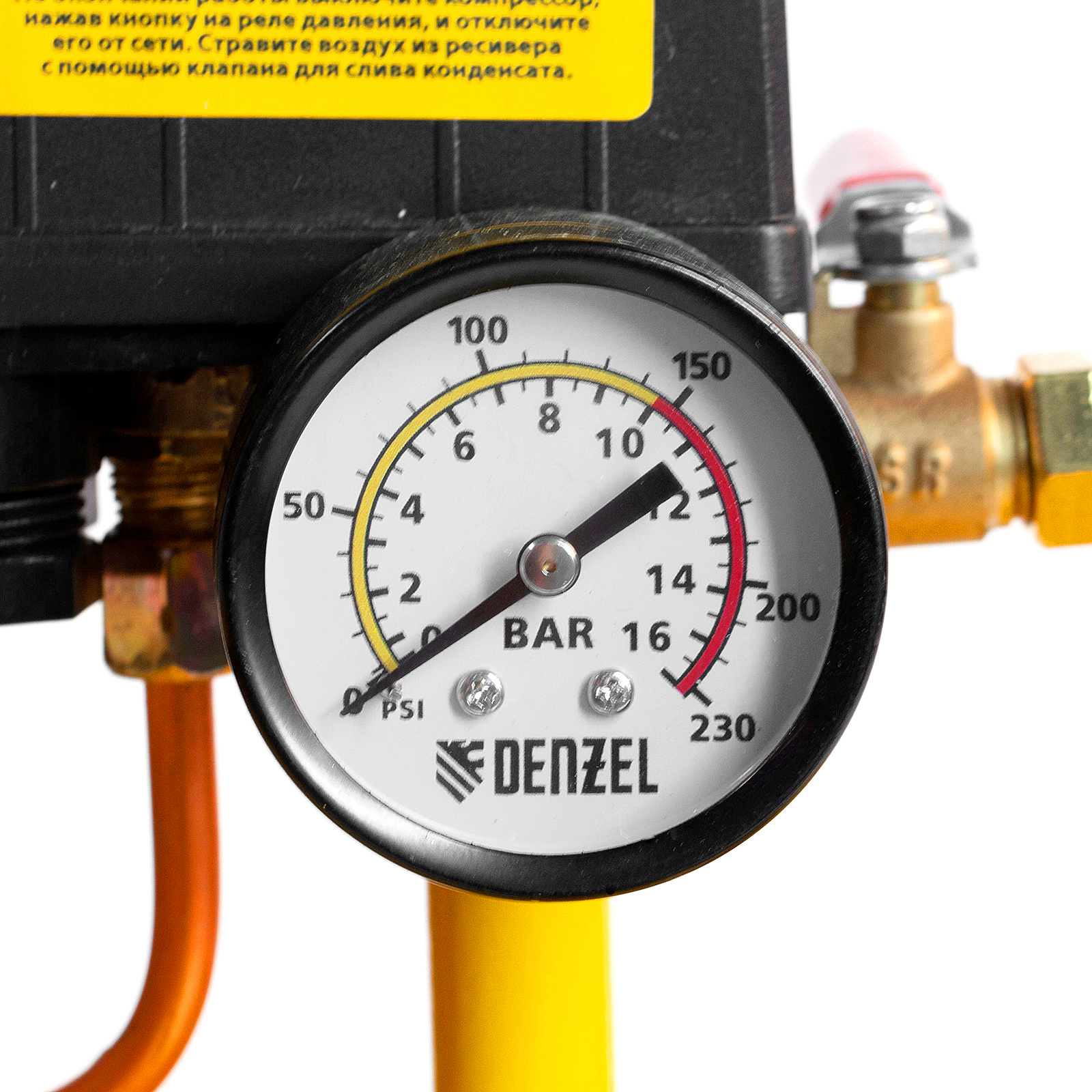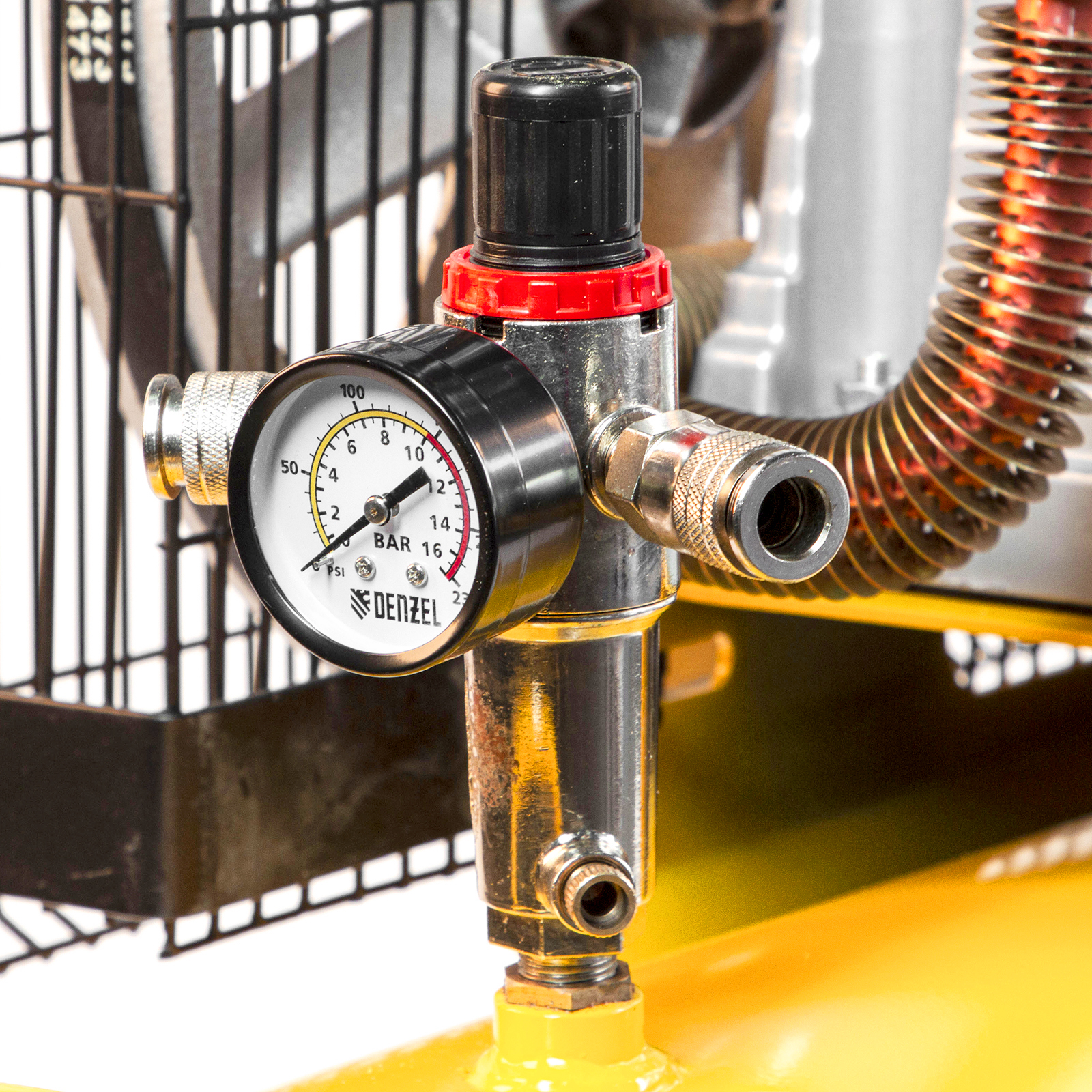 - Удобный контроль работы — компрессор оснащен двумя манометрами для отслеживания давления в ресивере и в пневмолинии.