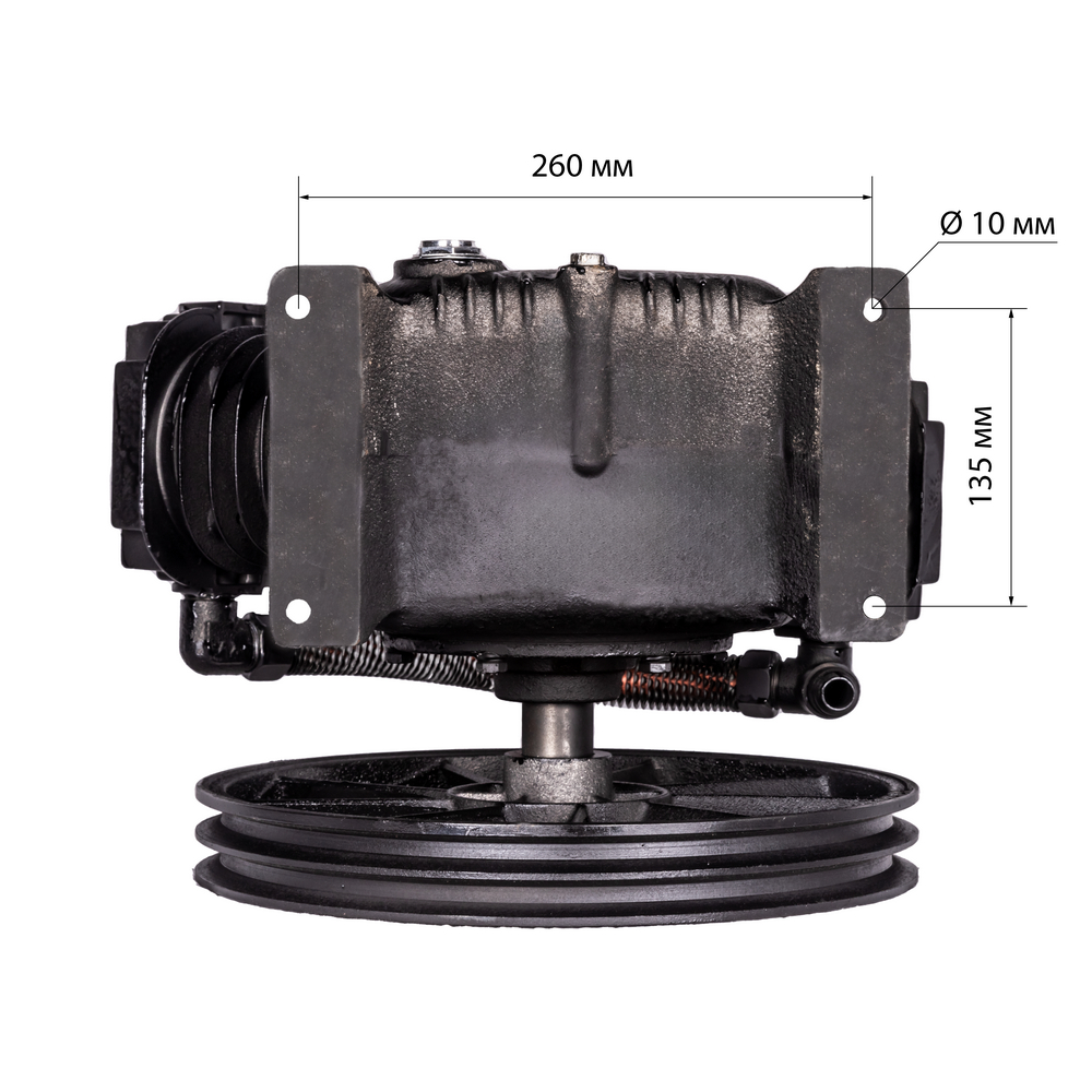 Подключение к компрессору механическое - через ременную передачу. Воздушная магистраль от ресивера компрессора подключается к выпуску компрессорной головки.