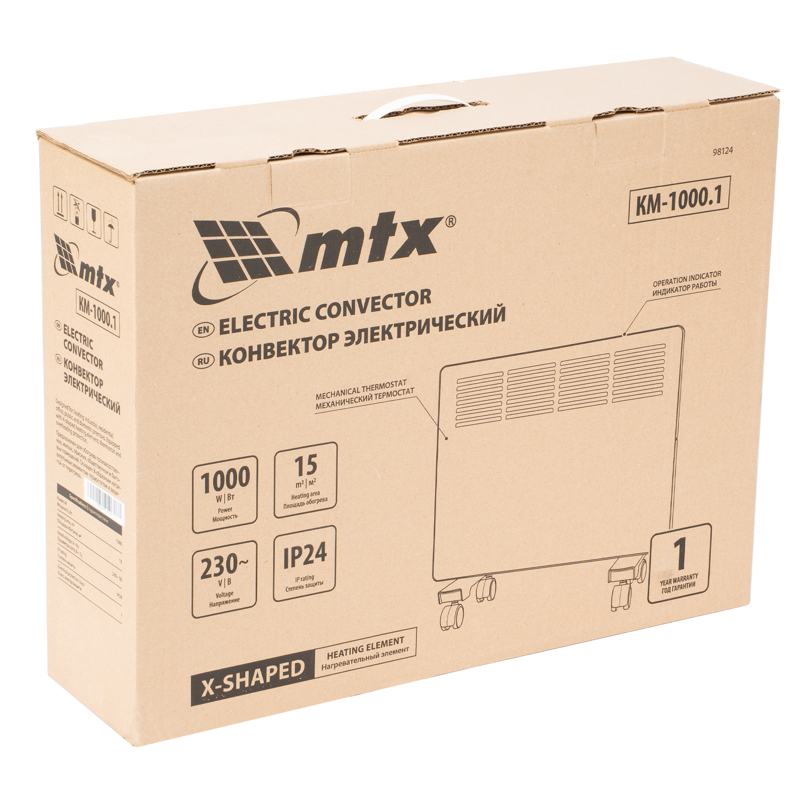Конвектор электрический КМ-1000.1, 230 В, 1000 Вт, X-образный нагреватель, колеса, термостат MTX в Москве