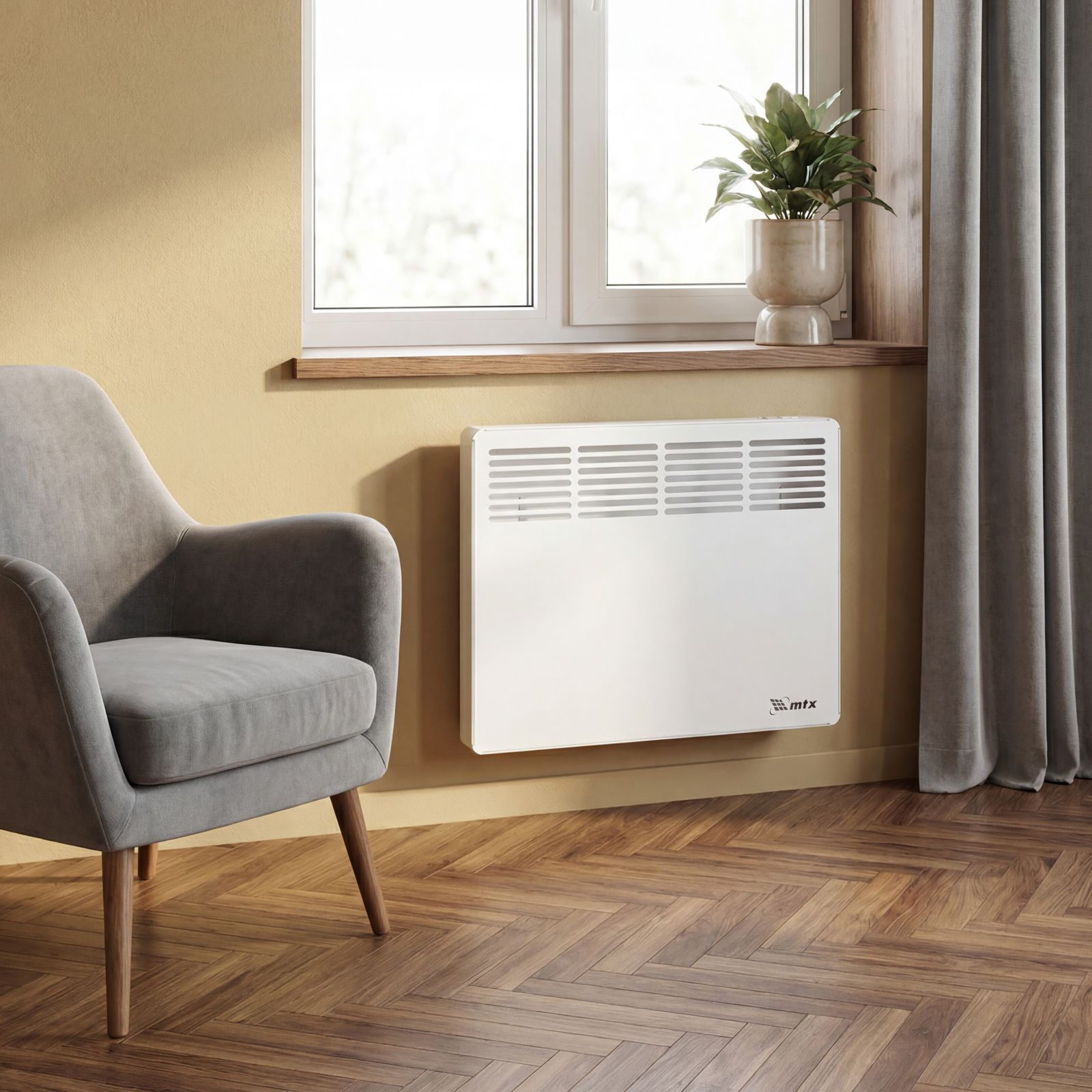 Конвектор электрический MTX KM-1000.1 98124 с X-образным нагревателем, колесами и термостатом, мощностью 1000 Вт, предназначен для использования в закрытых помещениях: квартирах, офисах, на производствах, в общественных местах и т.д. Рекомендуемая площадь обогрева составляет 15 кв.м. Х-образный нагревательный элемент обеспечивает быстрый и равномерный прогрев помещения до необходимой температуры, при этом не сушит воздух.