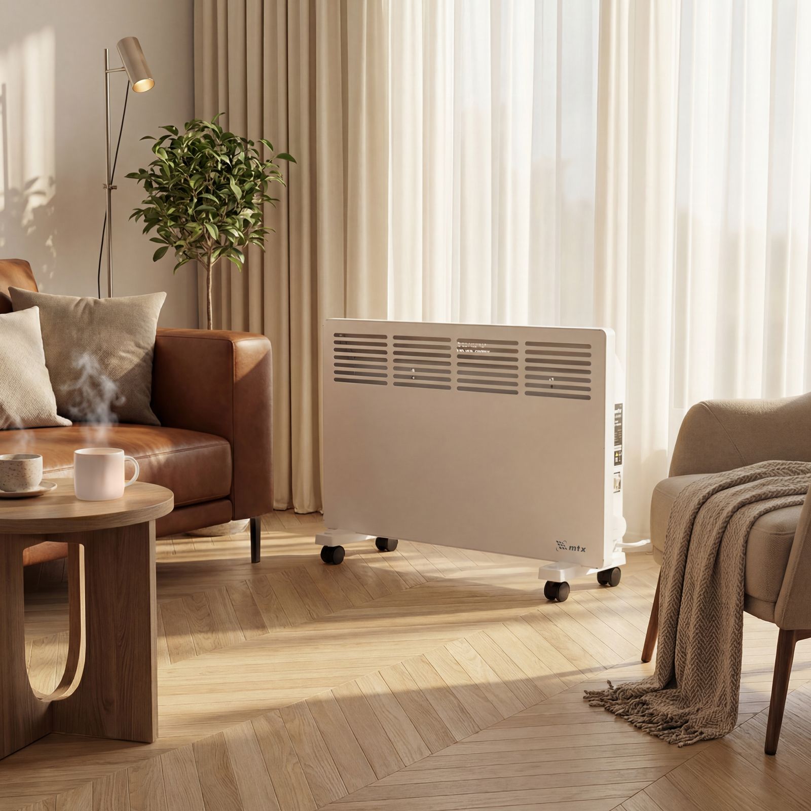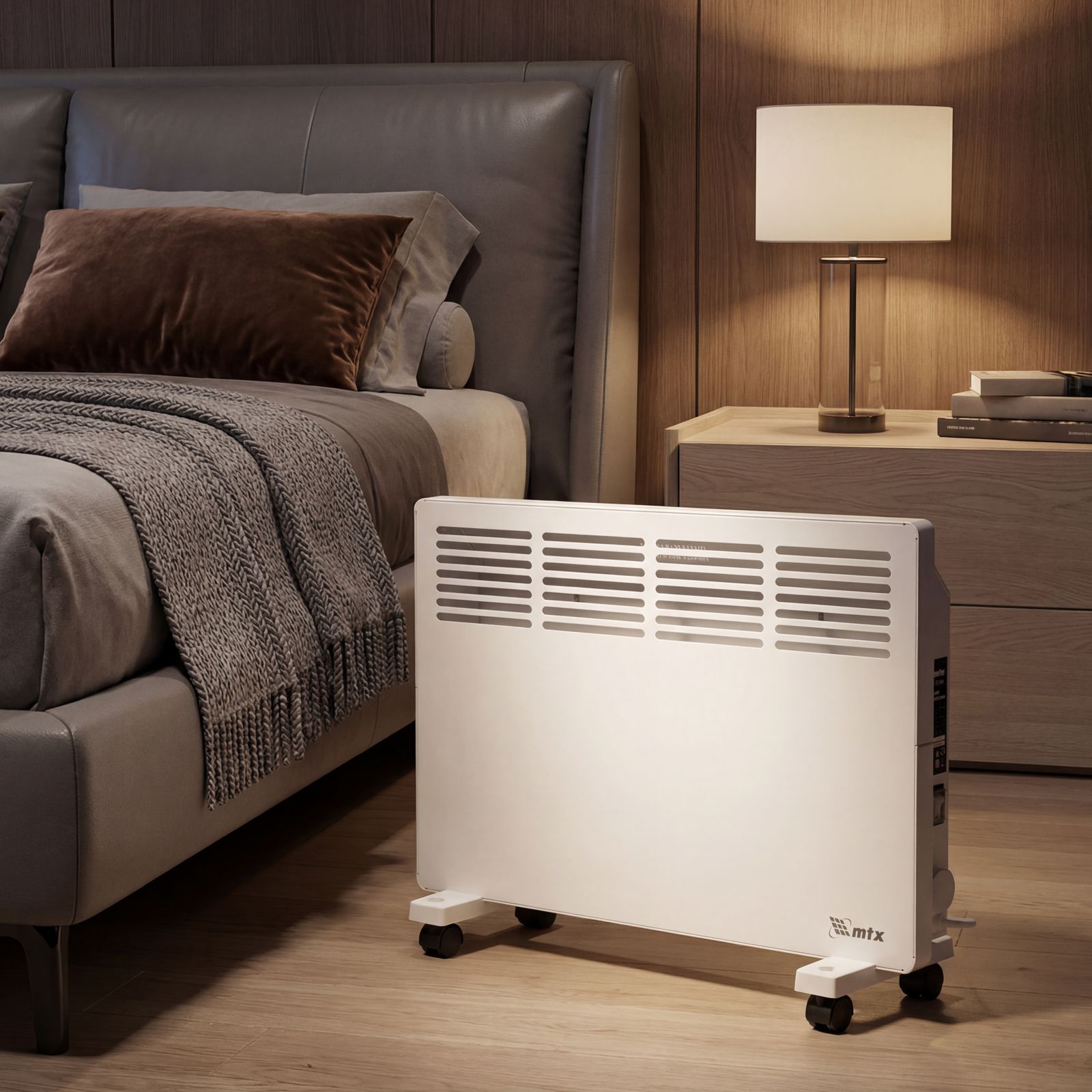 Конвектор электрический MTX KM-2000.2 98126 с X-образным нагревателем, колесами и термостатом, мощностью 2000 Вт, предназначен для использования в закрытых помещениях: квартирах, офисах, на производствах, в общественных местах и т.д. Рекомендуемая площадь обогрева составляет 25 кв.м. Х-образный нагревательный элемент обеспечивает быстрый и равномерный прогрев помещения до необходимой температуры, при этом не сушит воздух.