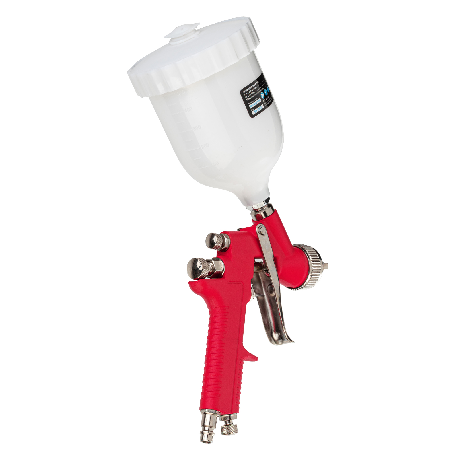 - Верхнее расположение бака — краскопульт удобно заправлять, лакокрасочный материал расходуется полностью.